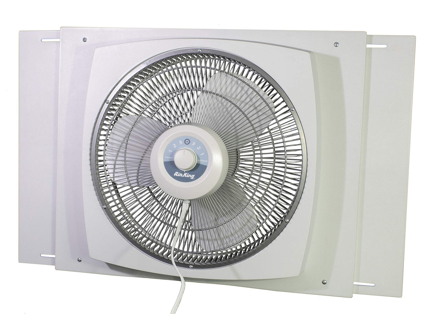 Air King'S 9155 16'' Window Fans Bring Fresh Air In Or Exhausts Stale Air Out Of Residential Settings And Are Powerful Enough For Light Commercial Use. The Air King 9155 Window Fan Features A Powerful And Durable Motor That Provides The Needed Amount Of Air Movement. The Fan Can Be Set For Intake Or Exhaust And Mounts Into Windows 26.5 Inches To 34.5 Inches Wide With A Height Of At Least 22 Inches. The Special Storm Guard Mounting System Allows The Fan To Be Installed In Front Of The Window So That In Bad Weather The Window Can Be Closed Behind The Fan Without Having To Remove It. Constructed Of Impact Resistant Plastic For Years Of Reliable And Durable Operation. Etl Listed And Complies With Osha Requirements.
