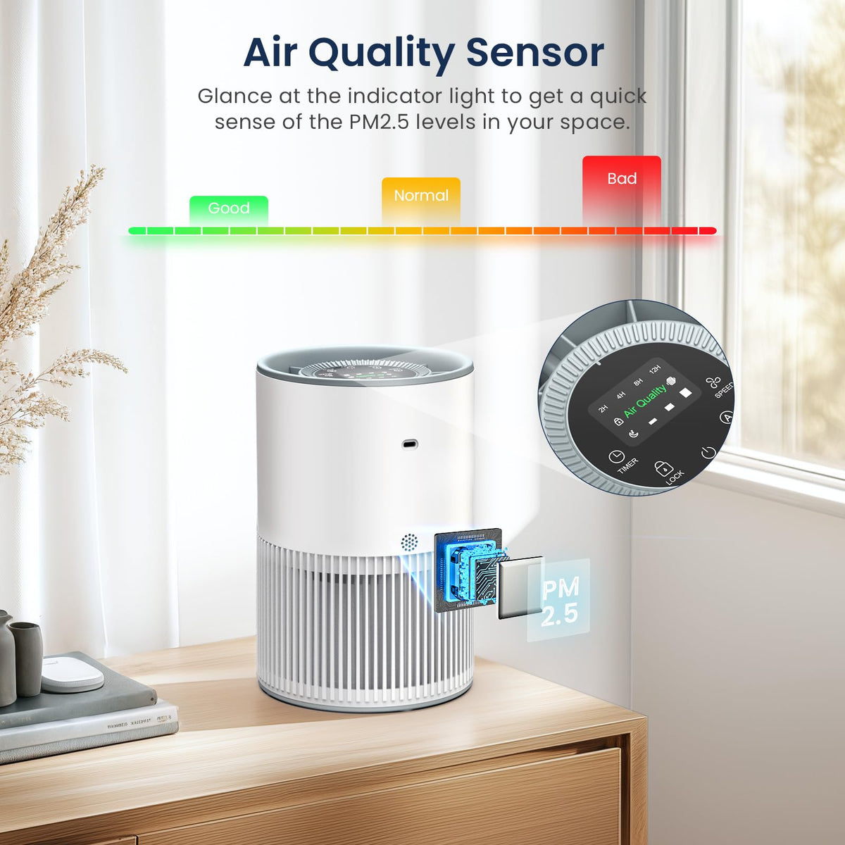 Q: How often do I need to replace the filter?A: It is recommended to replace the filter every 3 to 6 months for optimal performance. The air purifier has a filter replacement reminder function that alerts you when it's time to change the filter.