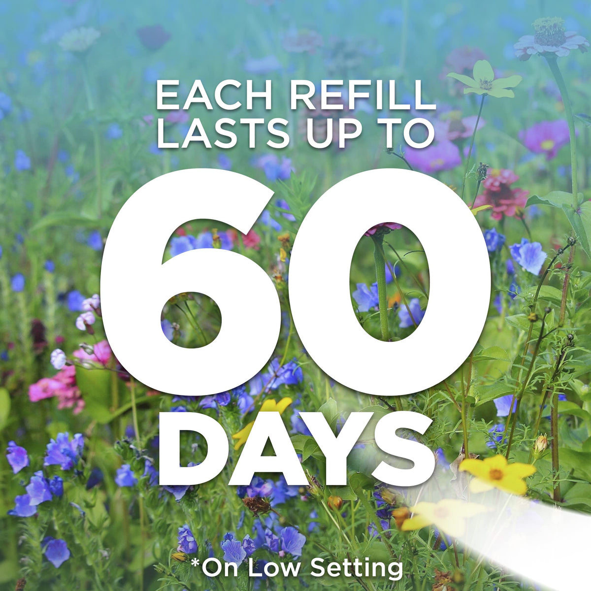 Q: How long does the Air Wick Plug in Scented Oil Refill last?A: The Air Wick Plug in Scented Oil Refill can last up to 60 days based on the low fragrance setting, providing you with a continuous and long-lasting scent experience.