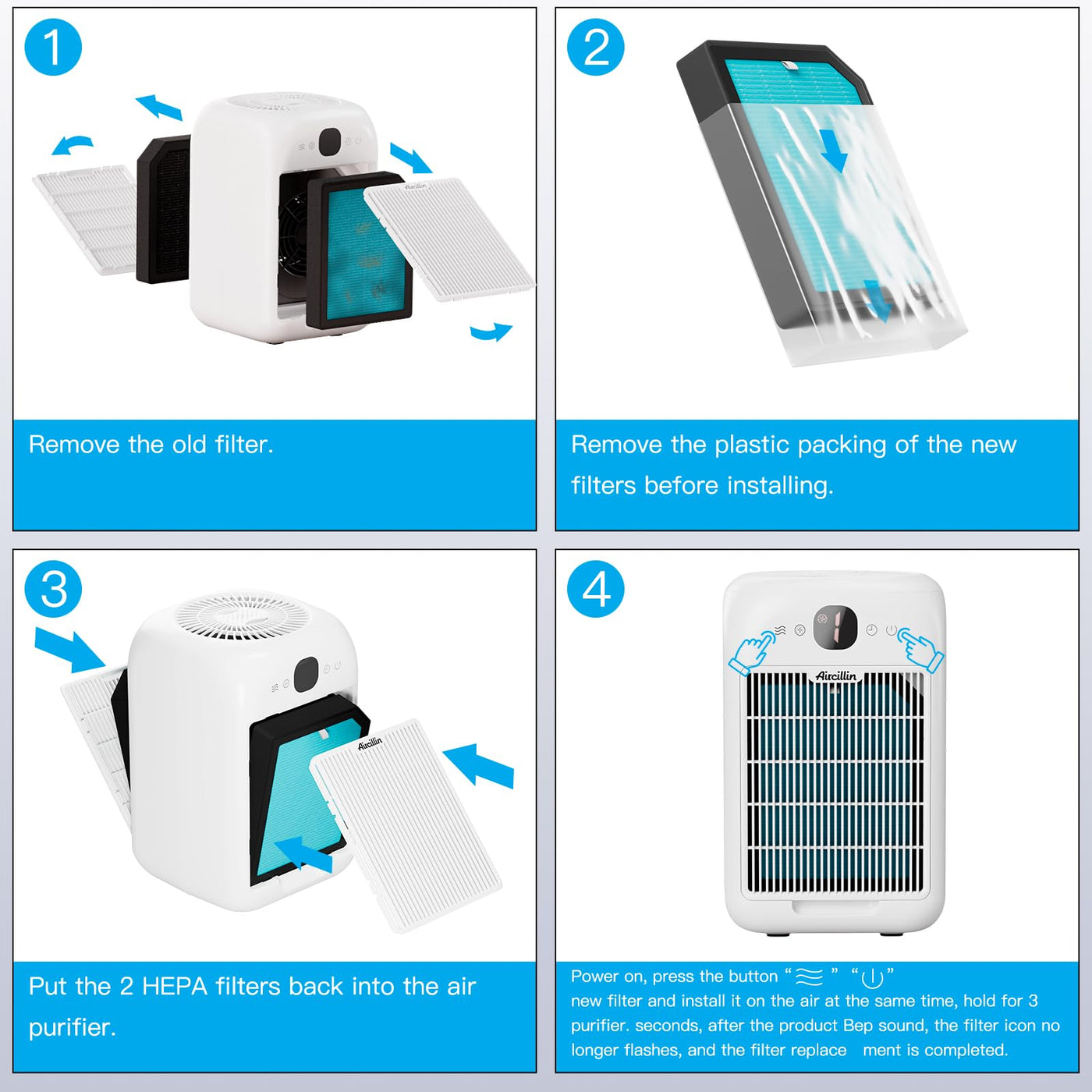Genuine Filter Replacement For Aircillin Ap1501, 4-Pack | 3-Stage Filtration System: The Combined Action Of The Pre-Filter, H13 Hepa Filter, And Activated Carbon Filter Collaborates Seamlessly To Trap Up To 99.99% Of Particles With A Minimum Size Of 0.1 Microns In Diameter And Reduce Undesirable Odors, Effectively Enhancing The Air Quality Within Your Living Area | Improved Filtration: By Utilizing The Ultra-Fine Nylon Pre-Filter And Activated Carbon Filter, Larger Particles Are Effectively Captured, And Odors And Fumes Are Efficiently Absorbed. Simultaneously, The Efficient Filter Integrated Into The 3-In-1 Setup Effectively Removes Dust, Pollen, And Various Other Contaminants | Targeting Everyday Household Odors: The Activated Carbon Filter Actively Absorbs Smoke, Cooking Aromas, Pet Odors, And Potentially Harmful Fumes. This Feature Renders It An Excellent Option Specifically Tailored For Pet Owners, Smokers, And Those Residing In Urban Areas | Professional After-Sales & Authenticity Guarantee: Please Remove The Plastic Packaging Before Operating The Air Purifier. If You Encounter Any Issues With Your Replacement Filter, Our Dedicated Customer Support Team Is Readily Available To Assist You