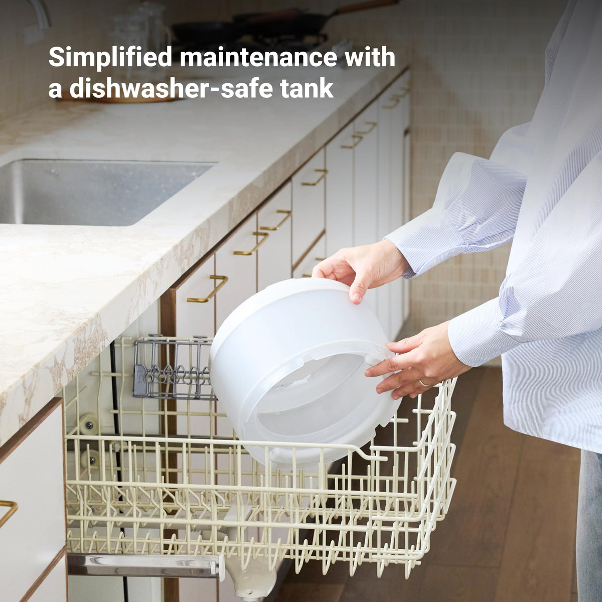 Q: How does the 360° InvisibleMist™ Technology work?A: The 360° InvisibleMist™ Technology delivers clean and balanced moisture without the stickiness or residue typically associated with mist-producing humidifiers. It ensures that pure water vapor is released into the air, enhancing your comfort.