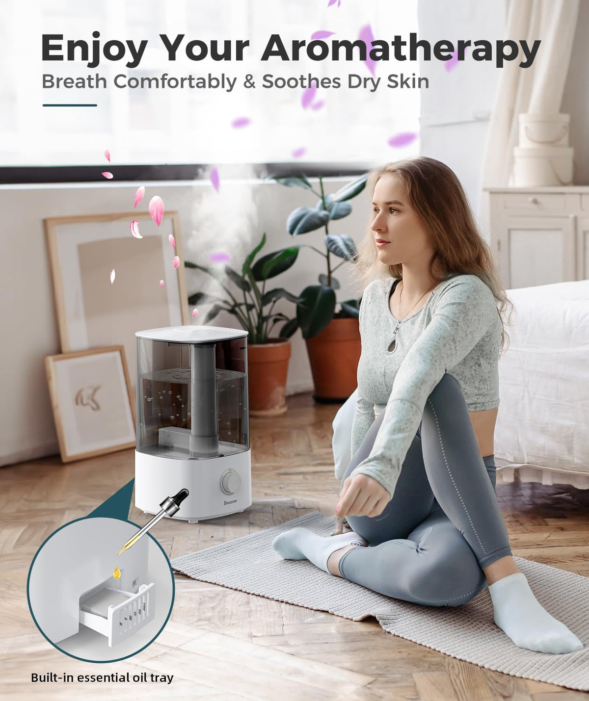 Breezome 4L Humidifiers For Bedroom, Essential Oil Diffuser, Top Fill Cool Mist Ultrasonic Humidifiers For Baby, Plants, Nursery