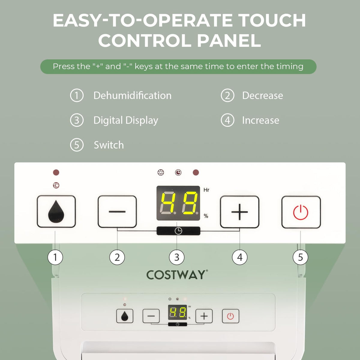 Features: Efficient Dehumidification With An Adjustable Humidity Range Of 30% - 80% Widely Used In The Home, Bedroom, Basement, Bathroom, Garage 3 Dehumidification Modes And 24-Hour Timer Meet Different Needs Led Touch Control Panel Makes It Simple To Operate Visible Water Level Allows You To See Collected Water The Air Filter Net Can Be Easily Detached And Washed Overflow Protection And Auto Defrost Function Easy To Move With The Top Lifting Handle Quiet Operation And Energy-Saving Manual & Continuous Drainage