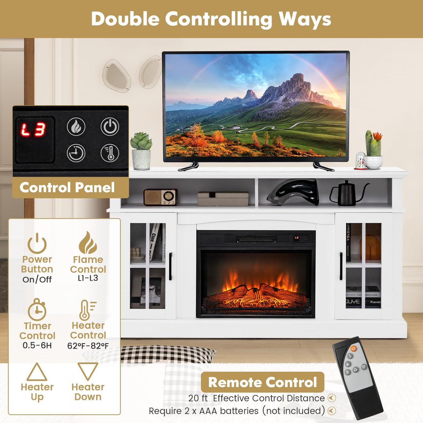 Costway Electric Fireplace Tv Stand For Tvs Up To 65 Inches, 1400W Heater Insert With Remote Control, 6H Timer, 3 Level Flame, Overheat Protection And Csa Certification, Adjustable Shelves, White