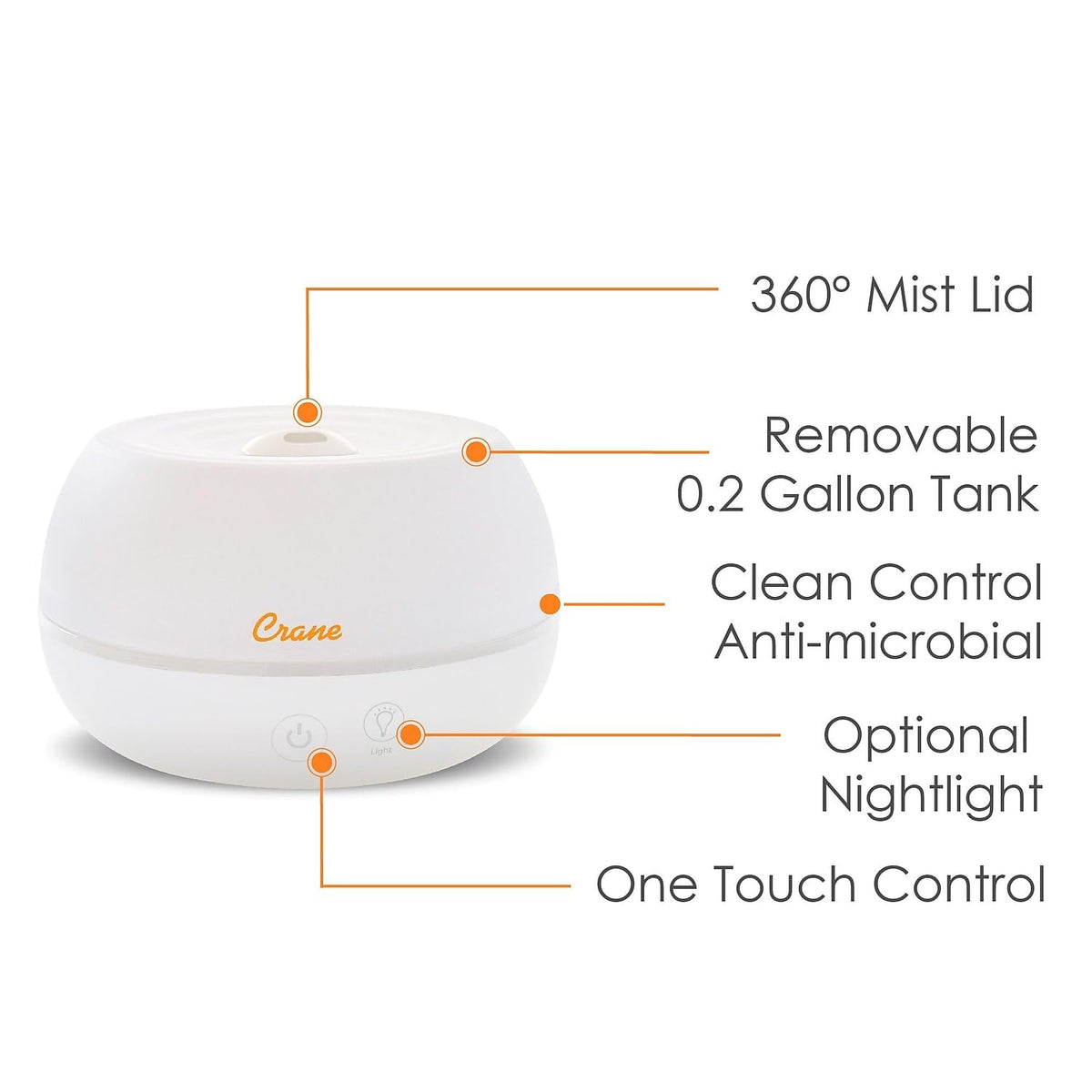 Crane Small Ultrasonic Diffuser And Air Humidifiers For Bedroom And Office, .2 Gallon Cool Mist Humidifier For Personal Use, No