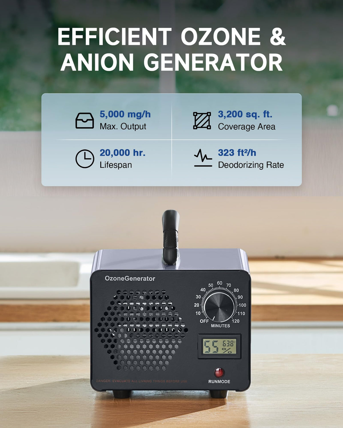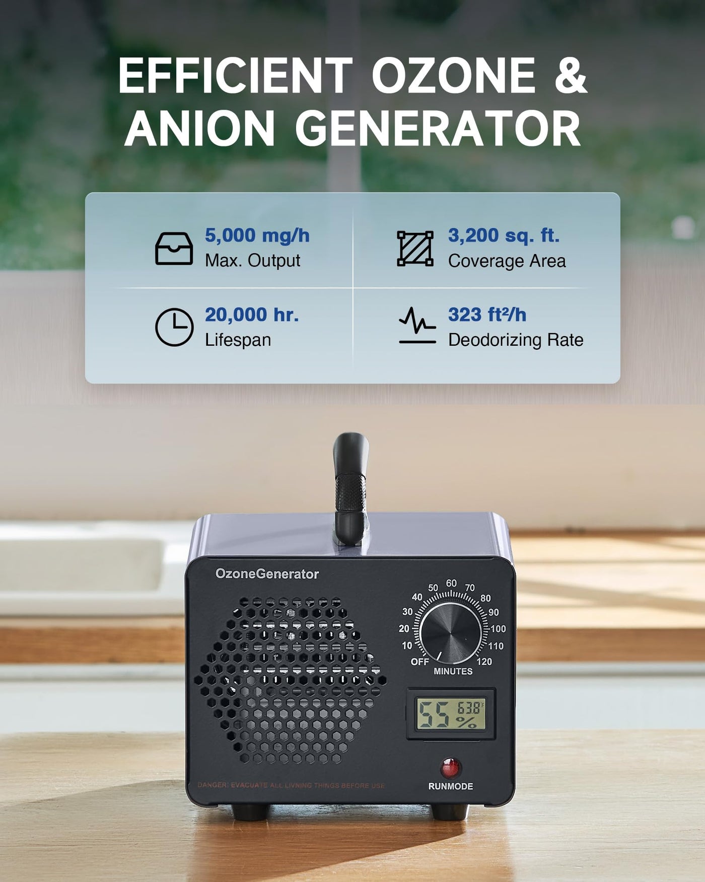 Creworks Ozone Generator, 5000 Mg/H High Capacity Ozone Machine For Car Home Smoke Pet Odor Removal, Commercial Ozone Odor Elimi