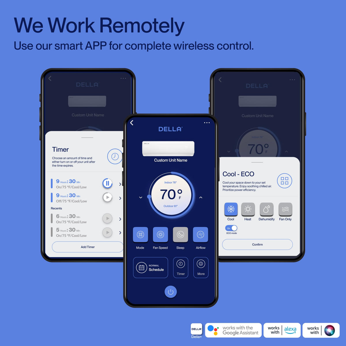 Features: Efficiently Heat Or Cool Your Space With This Mini Split Air Conditioner. This Pre-Charged Air Conditioner Unit Is Designed With A Ductless Mini Split Inverter Plus System With A Heat Pump And Dehumidification. The Device Can Easily Be Controlled And Adjusted From The Remote Control Or From The Della App. The Package Includes All Of The Necessities For An Easy Installation Experience.