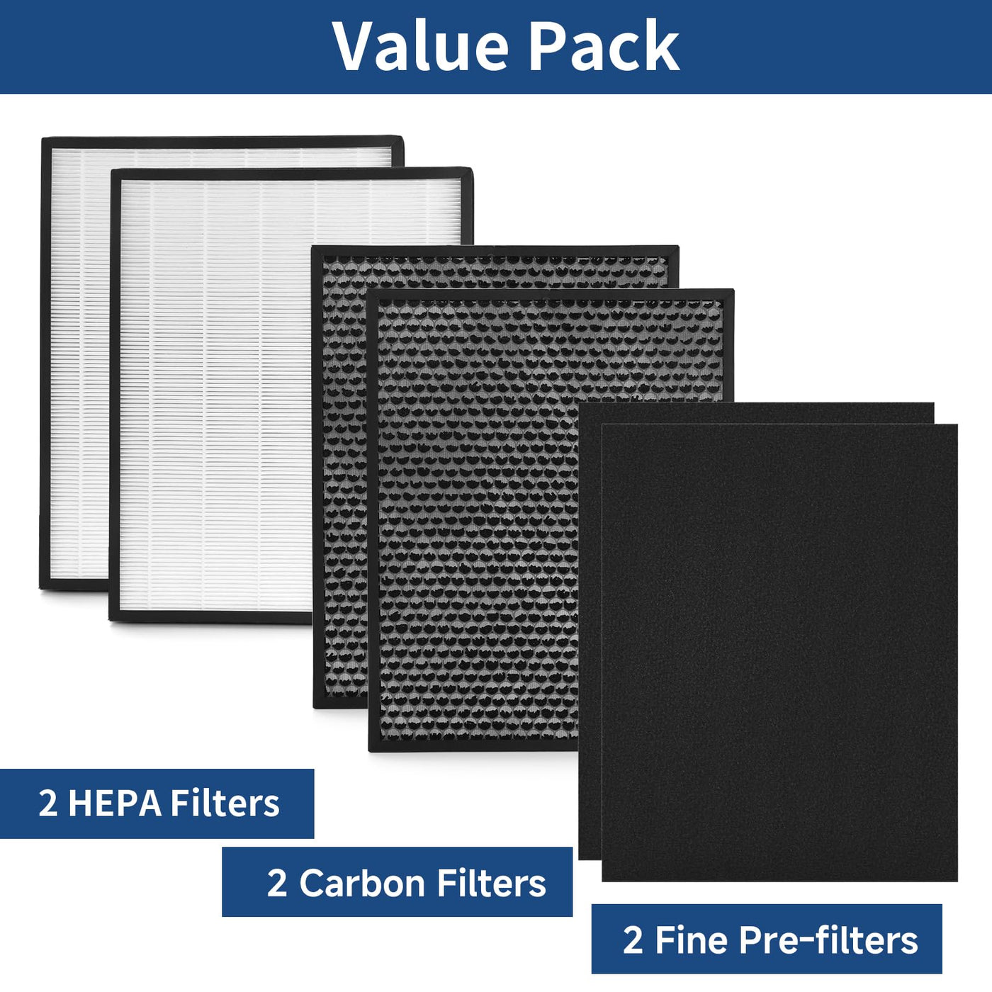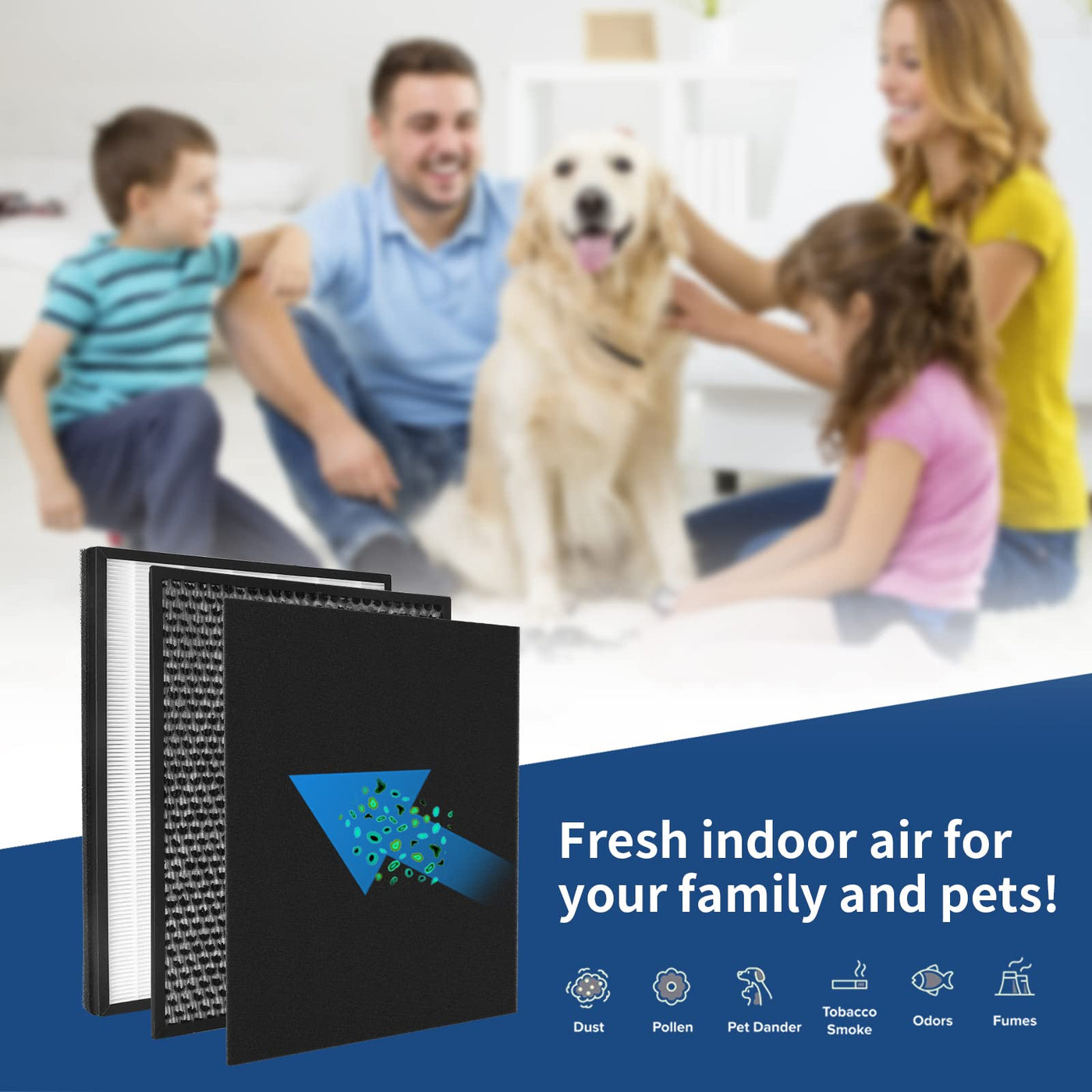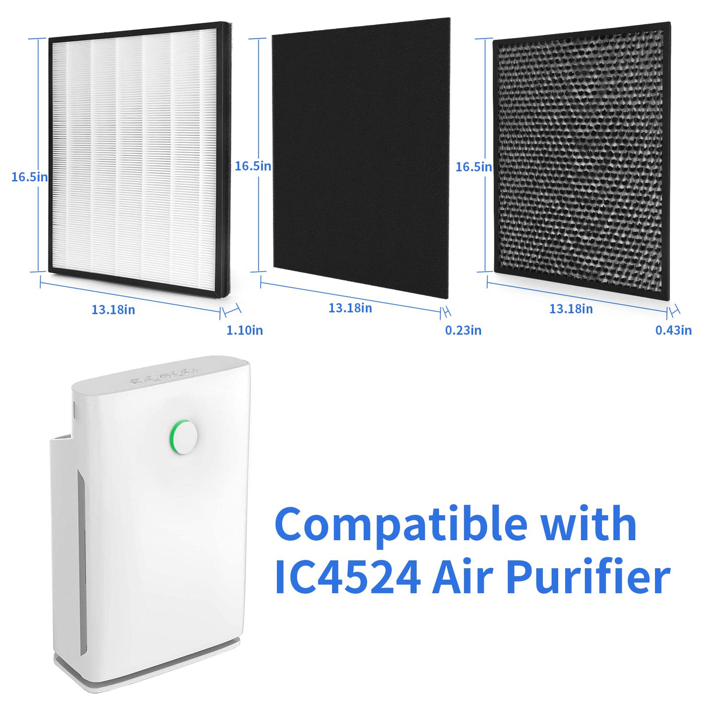 Q: What filters are included in the FCFMY 2 Packs IC-4524 Replacement Filters?A: The FCFMY 2 Packs IC-4524 Replacement Filters include 2 True HEPA filters, 2 activated carbon filters, and 2 nylon pre-filters, providing a comprehensive solution for improved air quality.