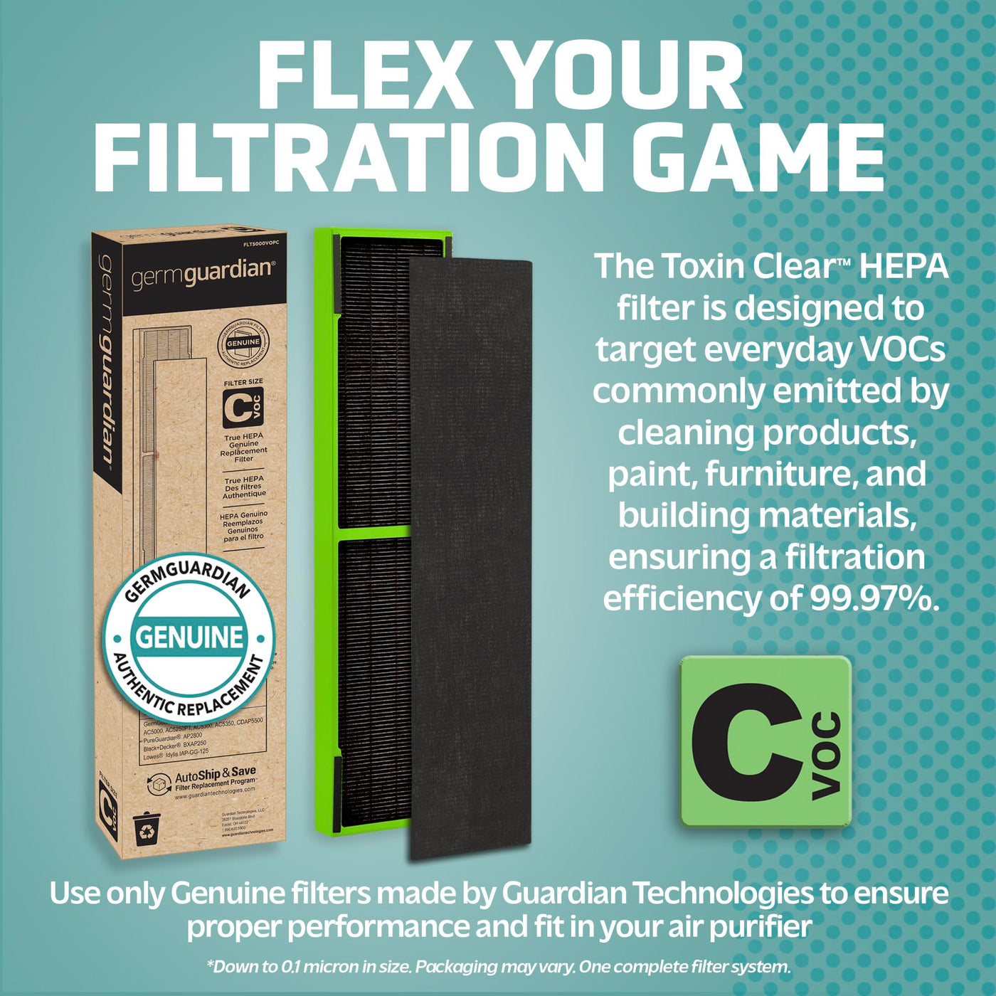 Germguardian Filter C Toxin Clear Hepa Genuine Replacement Filter, Removes 99.97% Of Pollutants, Common Vocs, Household Toxins,