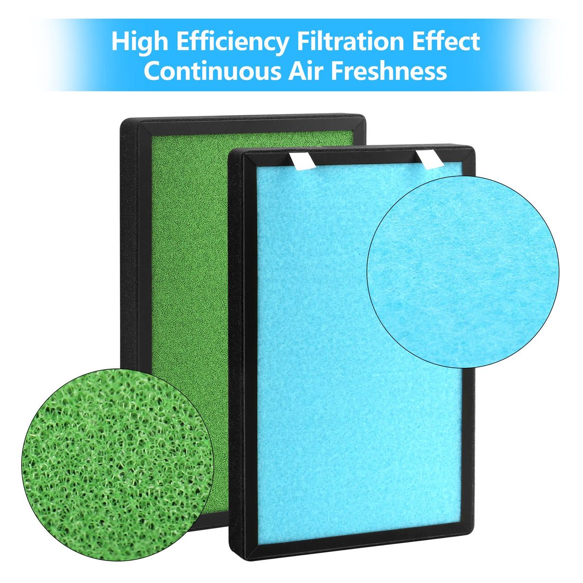Q: What filters are included in the GoKBNY PB-P01 Replacement Filter?A: The GoKBNY PB-P01 Replacement Filter features a 3-in-1 design, including a pre-filter, a HEPA filter, and an activated carbon layer, ensuring comprehensive air purification.