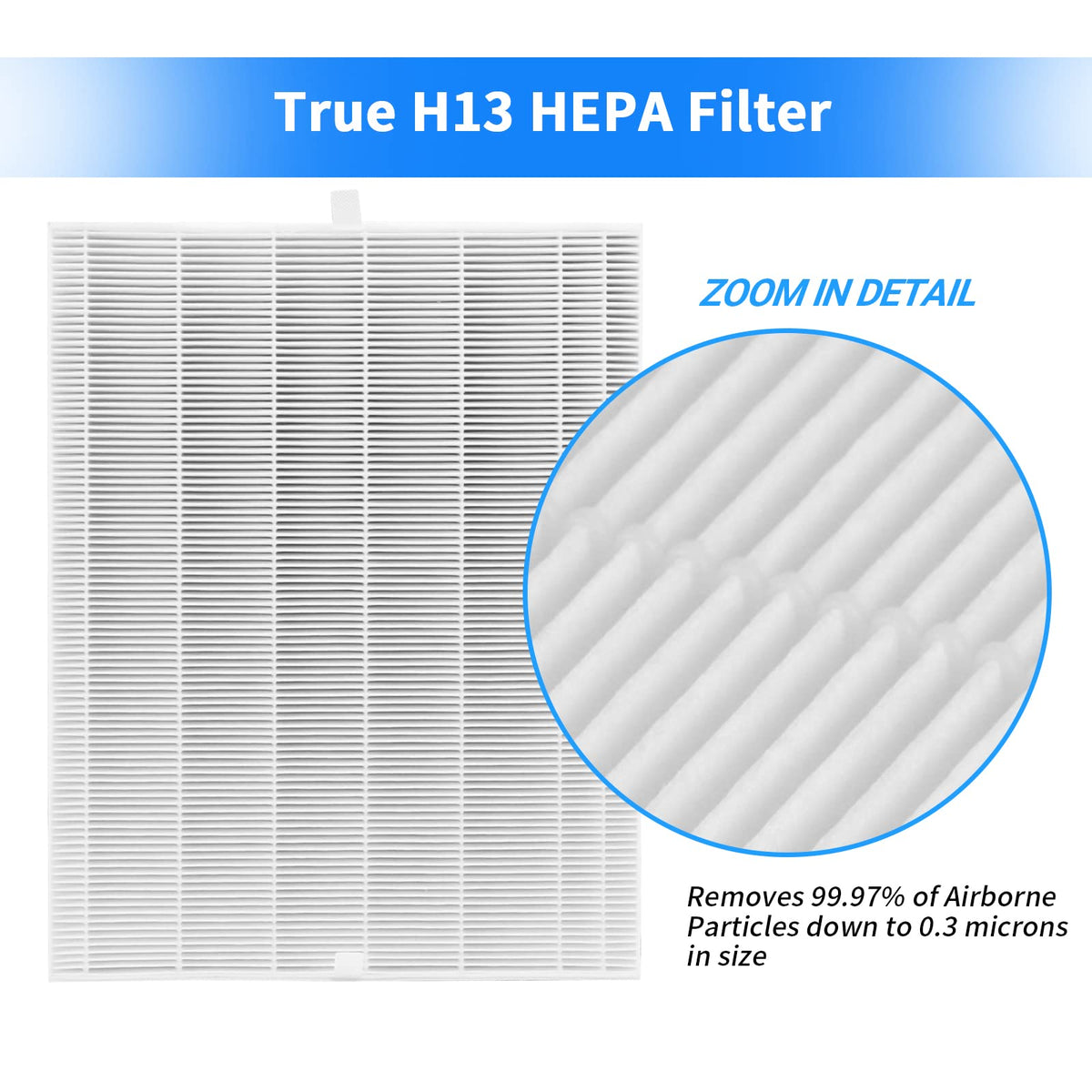 Q: How effective is the H13 True HEPA filter in removing airborne particles?A: The H13 True HEPA filter is highly effective, capable of filtering out 99.97% of particles as small as 0.3 microns. This makes it an excellent choice for improving indoor air quality and creating a healthier environment for you and your family.