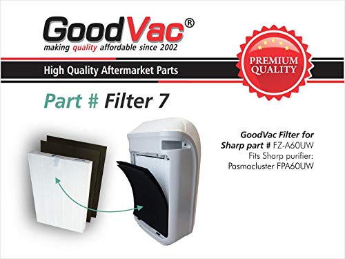 Sharp Non-Oem Fp-A60Uw Hepa Filter For Air Purifiers By Goodvac One High Efficiency Hepa Filtration Air Filter. H13 Filtration Filters Filter Particles 0.3 Microns Or Larger From The Air. Recommended To Be Changed Every 3 Years Of Normal Use For Maximum Efficiency. 2 Activated Charcoal Carbon Pre-Filters Activated Charcoal Absorbs And Removes Odors From The Air Like From Pets, Cooking, Food And More. Recommended To Be Replaced Every 3 To 6 Months Depending On Use. High Quality Aftermarket Part Made By Goodvac. Hepa Filter Dimensions: Length: 15.5'' Width: 11.25'' Depth: 1.5'' Pre-Filter Dimensions: Length: 15.5'' Width: 11.25'' Depth: 0.25'' Designed To Fit Sharp Air Purifiers: Fz-A60Hfu Fz-A80Hfu Designed To Replace Oem Part Numbers: Fp-A60Uw