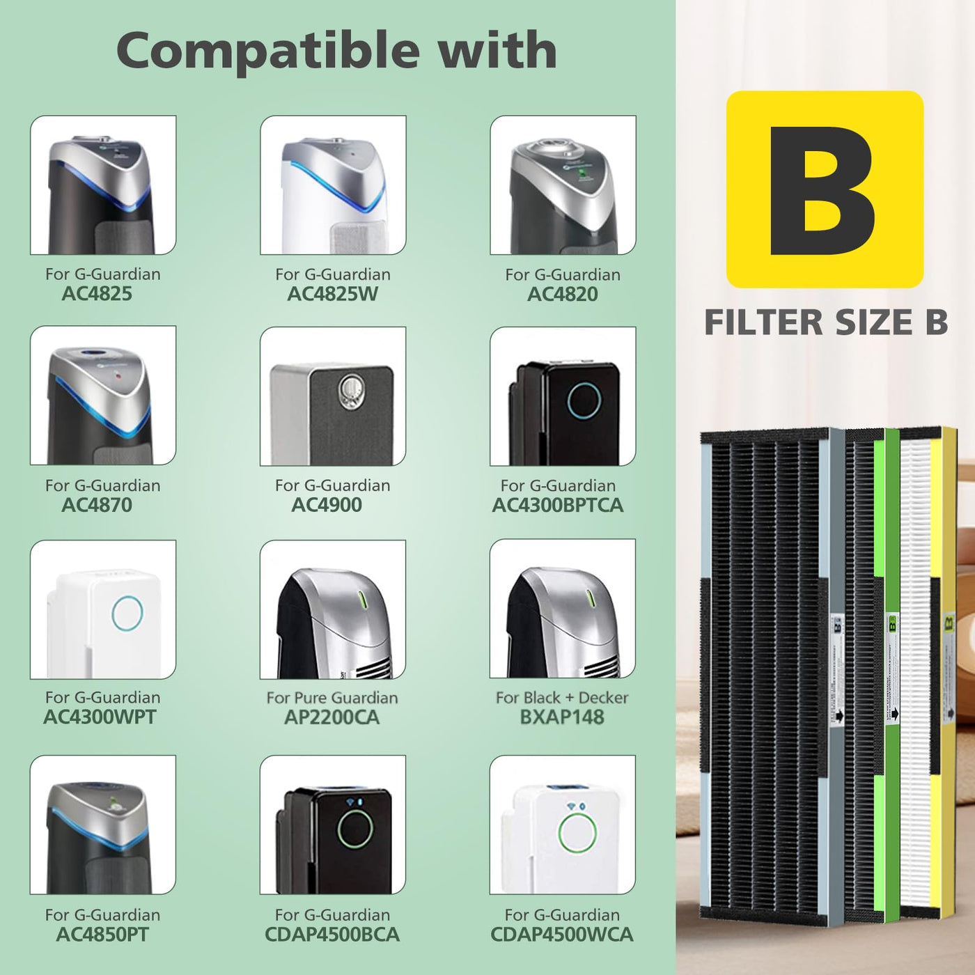 Isinlive 4 Pack Flt4825 True Hepa Filter B Replacement With Activated Carbon Pre-Filter Compatible With Guardian Air Purifier Ac4825 Ac4300 Ac4800 Ac4900 Ac4850Compatible With: Guardian Air Purifier Models: Flt4825 Filte B, Ac4300Bptca, Ac4900Ca, Ac4825, Ac4825E, Ac4850Pt, Ac4900Ca, Pureguardian Model Ap2200Ca And Black+Decker Bxap148Package Includes: 4 Hepa Filter And 8 Extra Activated Carbon Pre-Filters