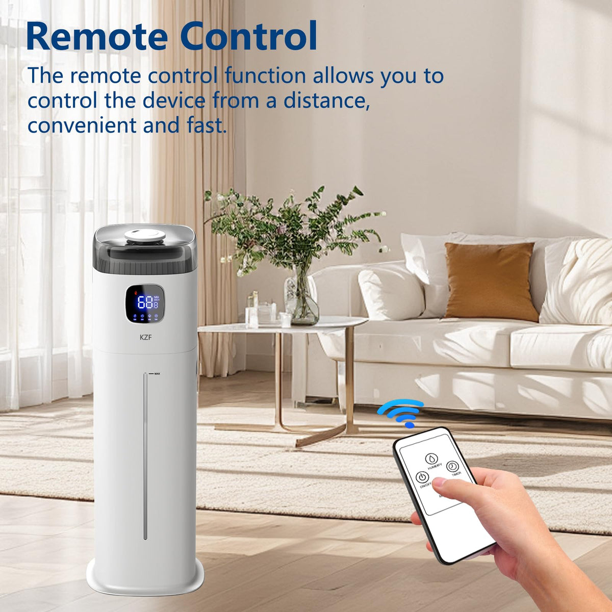 Q: What is the coverage area of the KZF 9L Humidifier?A: The KZF 9L Humidifier efficiently humidifies large spaces, covering areas up to 500-700 square feet, making it ideal for bedrooms, living rooms, offices, or yoga studios.