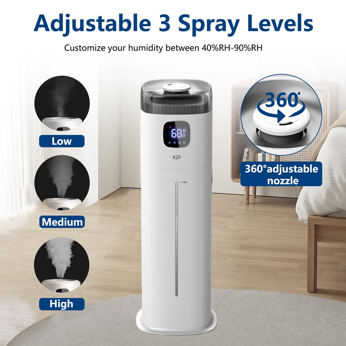 Kzf Large Humidifier For Bedroom, 9L/2.5Gallon Ultrasonic Cool Mist Humidifier With Humidistat, 360Nozzle, 350Ml/H Big Mist Leve