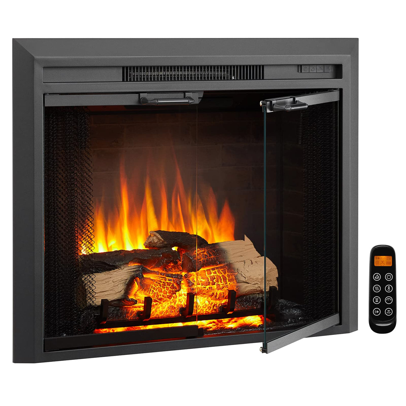 Legendflame Damon 30 Inches Electric Fireplace Insert, Glass Door And Mesh Screen, Fireplace Heater 750/1500W, Fire Crackling Sound, Adjustable Flame Speed, Remote Control, Black