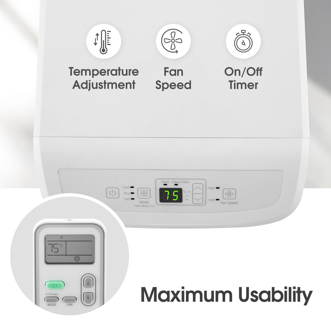 Q: How does the remote control work for this air conditioner?A: The included remote control allows you to conveniently adjust the temperature settings from across the room, making it easy to control the cooling, fan speed, and timer functions without having to get up.