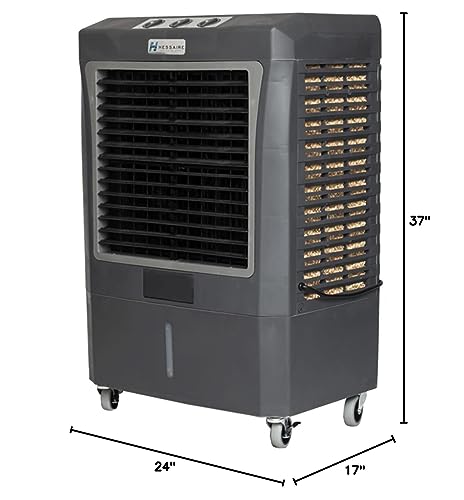 The Hessaire 3,100 Cfm Evaporative Cooler Is Compact In Size, Pleasing In Aesthetics, And The Performance Exceeds Coolers Of A Much Larger Size. This Performance Is Achieved Through Expanding Air-Intake Areas To The Hi-Density Rigid Media. These Coolers Have 3 Media Panels Instead Of A Single Panel Found On Most Mobile Coolers. 3 Panels Allow More Air-Intake Area And Reduce Pre-Rotation Of The Air To The Prop, Which Translates Into Lower Static Pressure And More Efficient Air Delivery To The Prop. The Hi-Density Media Provides 80% More Evaporation Surface Compared To Regular Density Media. This Means Higher Evaporation Efficiency And Cooler Temperatures. Patented Axial Prop Is Energy Efficient And Throws Cool Air Farther. Features An Oscillating Design For Maximum Cooling Along With Adjustable Outer Louvers. Molded With A Polypropylene Resin, Creating A Strong, Yet Lightweight Design.