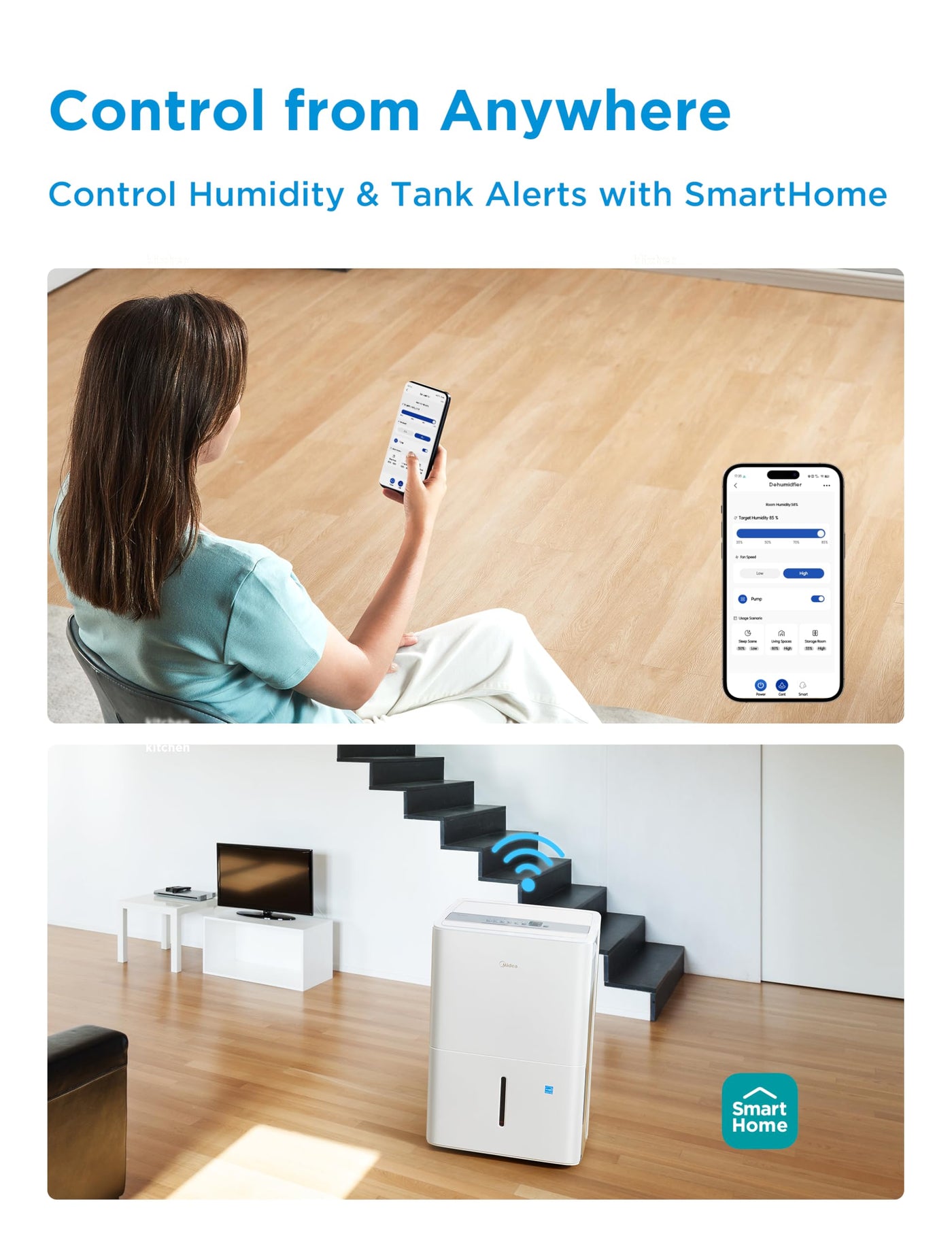 Midea 1,500 Sq. Ft. Energy Star Certified Dehumidifier With Reusable Air Filter 22 Pint Ideal For Basements, Large & Medium Sized Rooms, And Bathrooms (White)
