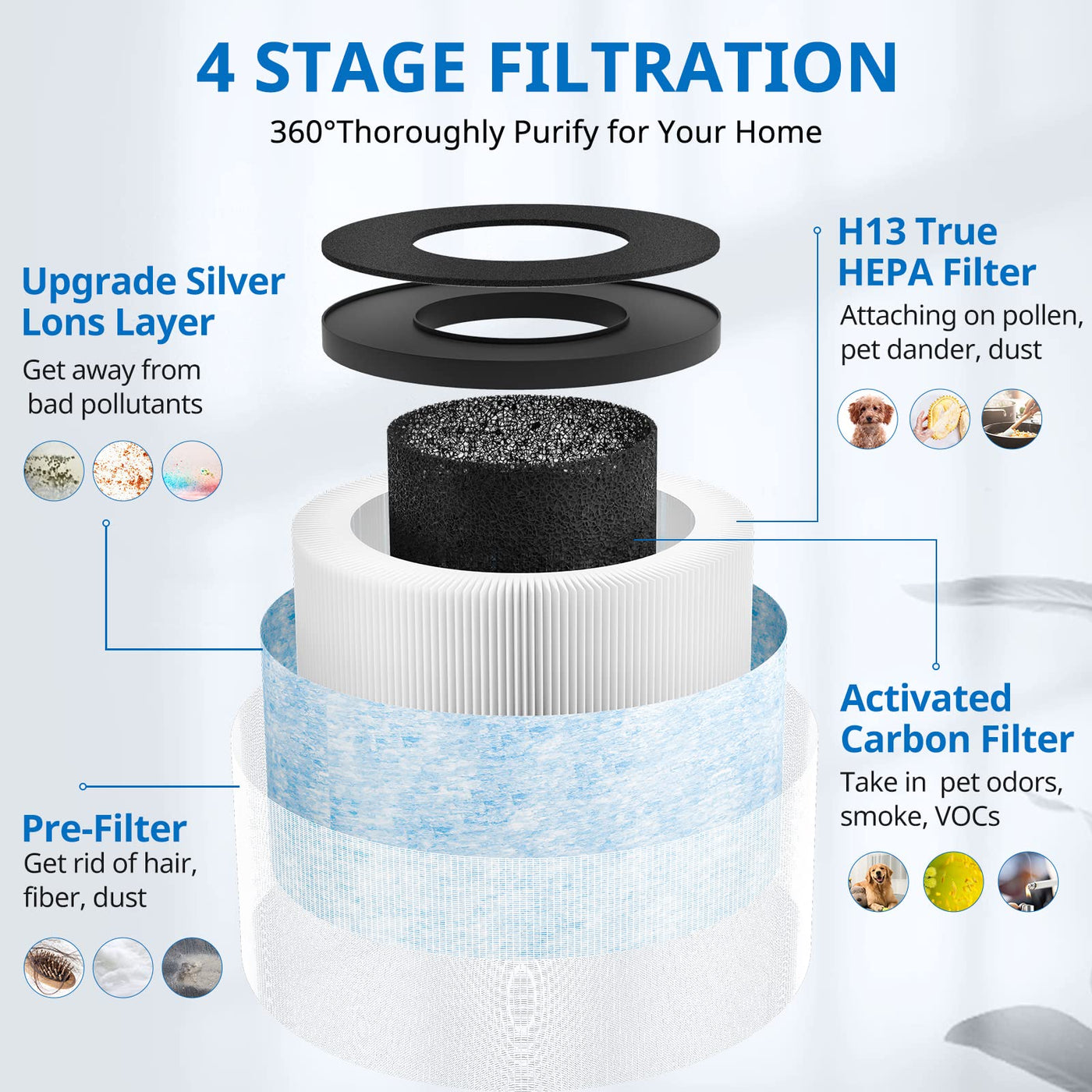 Mk01 Mk06 Dh Jh01 Upgraded True Hepa Replacement Filter Compatible With Aroeve Mk01 Mk06 And Kloudi Dh Jh01 Air Purifier (3 Pack