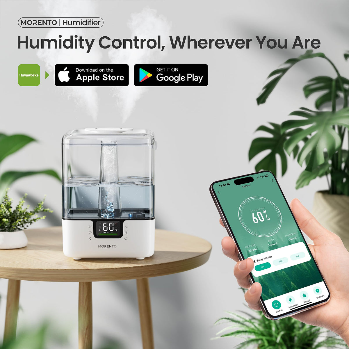 Morento Smart Humidifiers For Bedroom Large Room Home, 6L Cool Mist Top Fill Humidifier With Essential Oil Diffuser, Smart App &