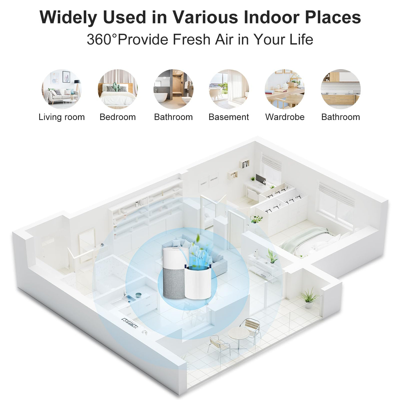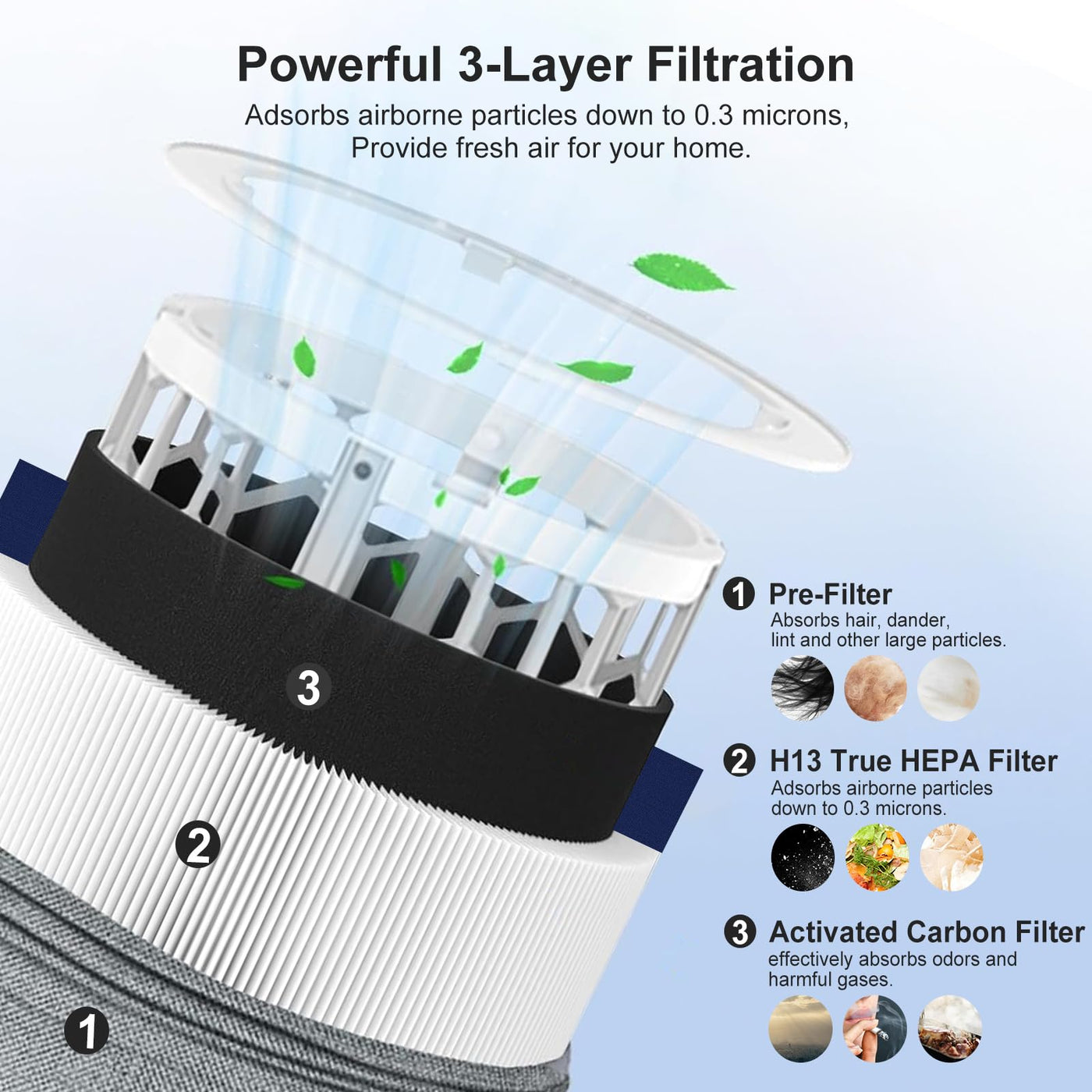Q: What benefits does the double-layer filtration technology provide?A: The double-layer filtration technology of the Blue Pure 511 Filter effectively absorbs pet hair, household waste, volatile organic compounds, and smoke, contributing to a healthier indoor air quality.