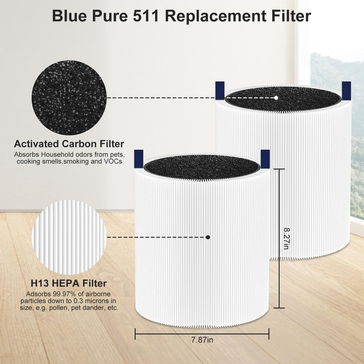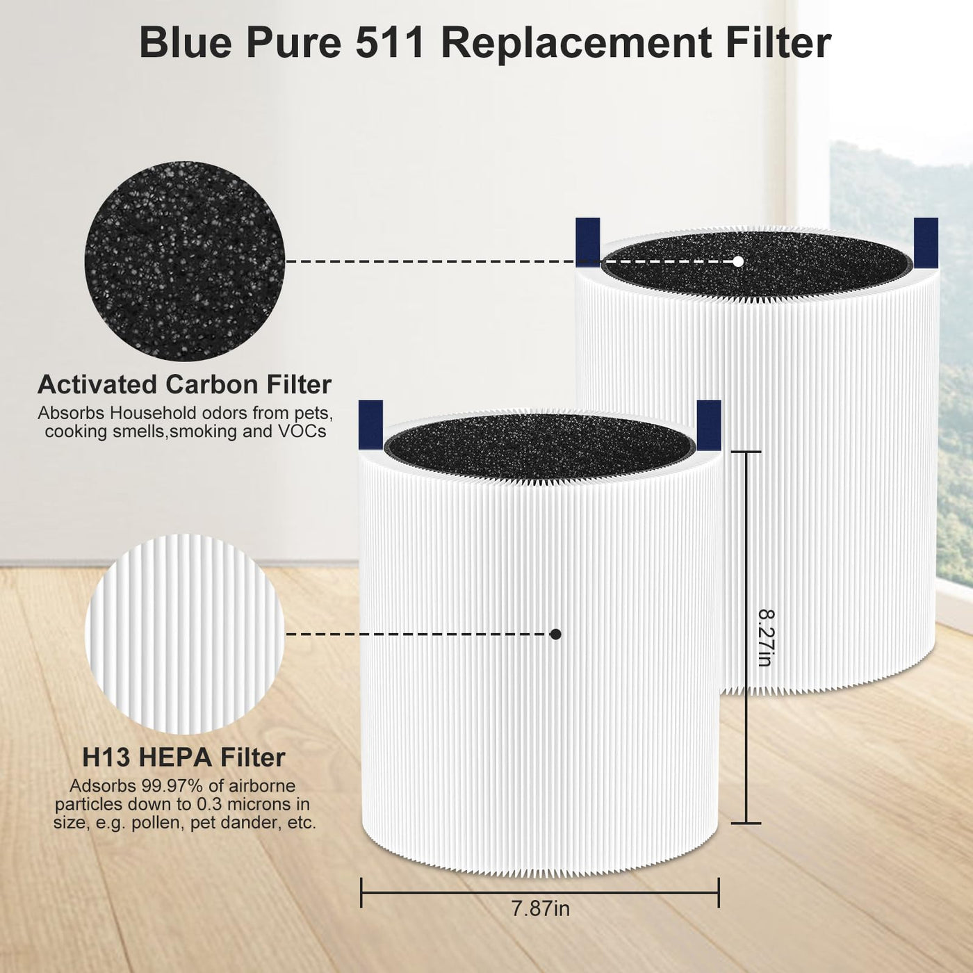 Blue Pure 511 Filter Replacement Compatible With Blueair Blue Pure 511 Air Purifier, 2 Pack Blue Air 511 Filter Particle And Activated Carbon Filter