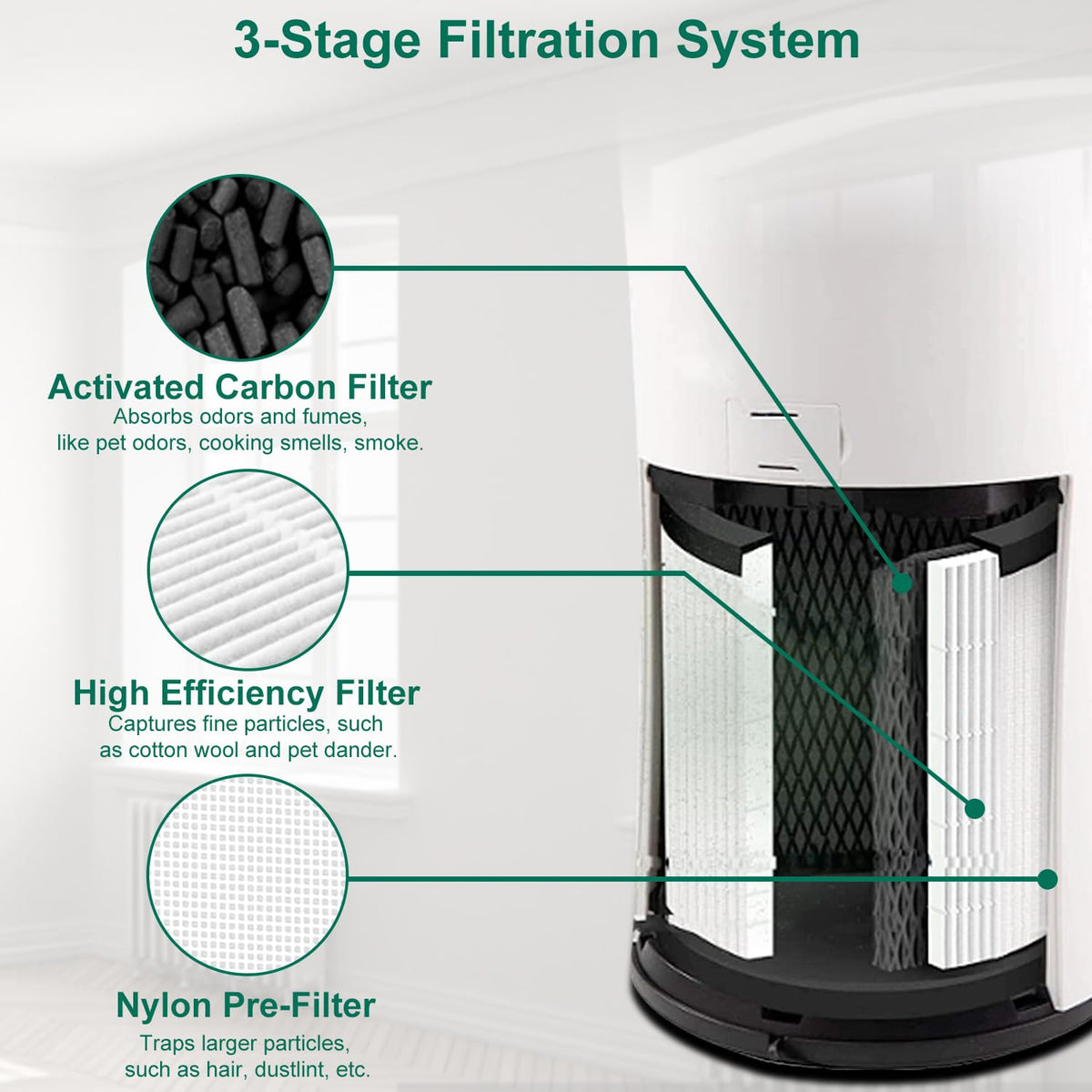 Q: What types of particles does the NXBHG LV-H133 Replacement Filter capture?A: The NXBHG LV-H133 Replacement Filter is designed to capture 99.9% of airborne particles down to 0.3 microns. This includes fine dust, allergens, smoke, cooking odors, and pet odors, thanks to its advanced 3-stage filtration system.