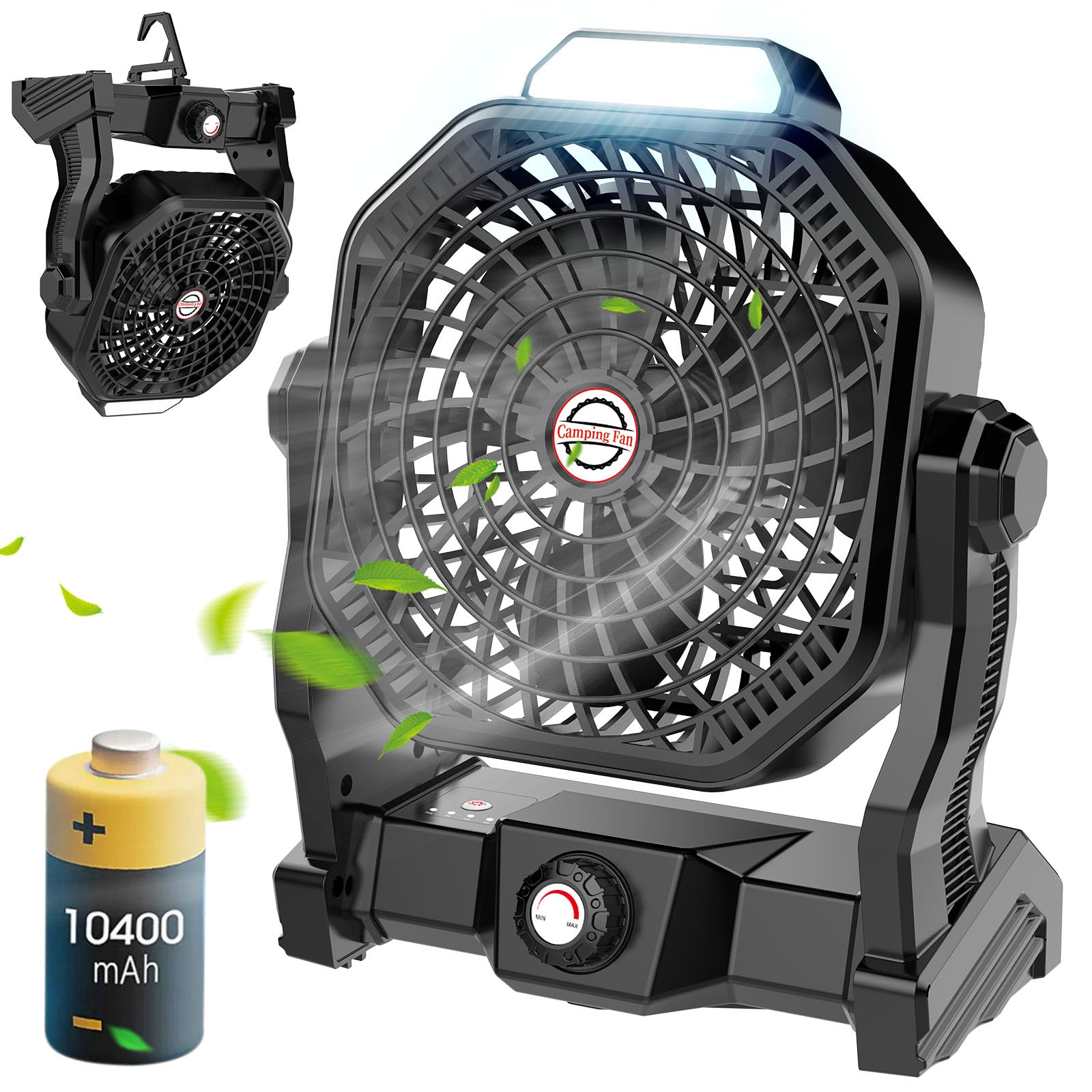 Portable Battery Operated Fan With Led Lantern, 10400Mah Outdoor Small Rechargeable Quiet Camping Fan, Personal Desk Fan Cooling