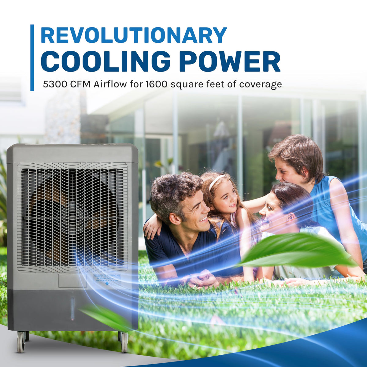 Portable Swamp Coolers 5300 Cfm Mc61M Evaporative Air Cooler With 3 Speed Fan Water Cooler Fan 1600 Sq. Ft. Coverage High Velocity Outdoor Cooling Fan Swamp Cooler By Hessaire Gray