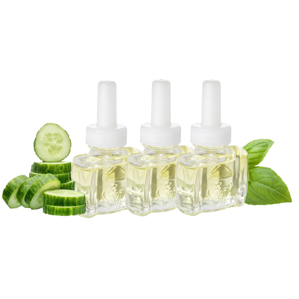 Scent Fill 100% Natural Cucumber Basil Plug In Air Freshener, Scented Oil Refills, 3 Refills