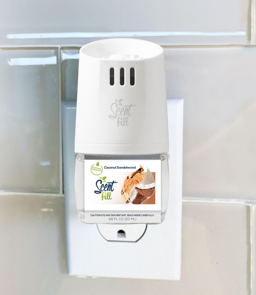 Q: How do I use the Scent Fill Coconut Sandalwood refills?A: To use the Scent Fill Coconut Sandalwood refills, simply insert one of the 20mL oil refills into your compatible plug-in air freshener device and plug it into an outlet. Adjust the settings as needed to achieve your desired scent intensity.