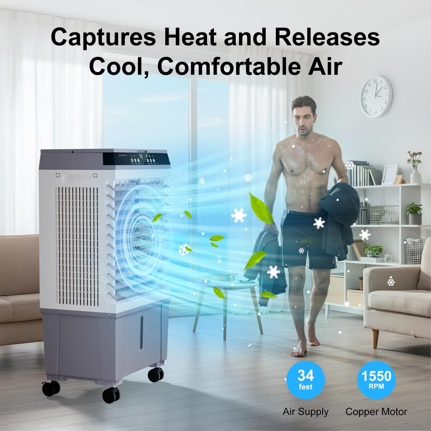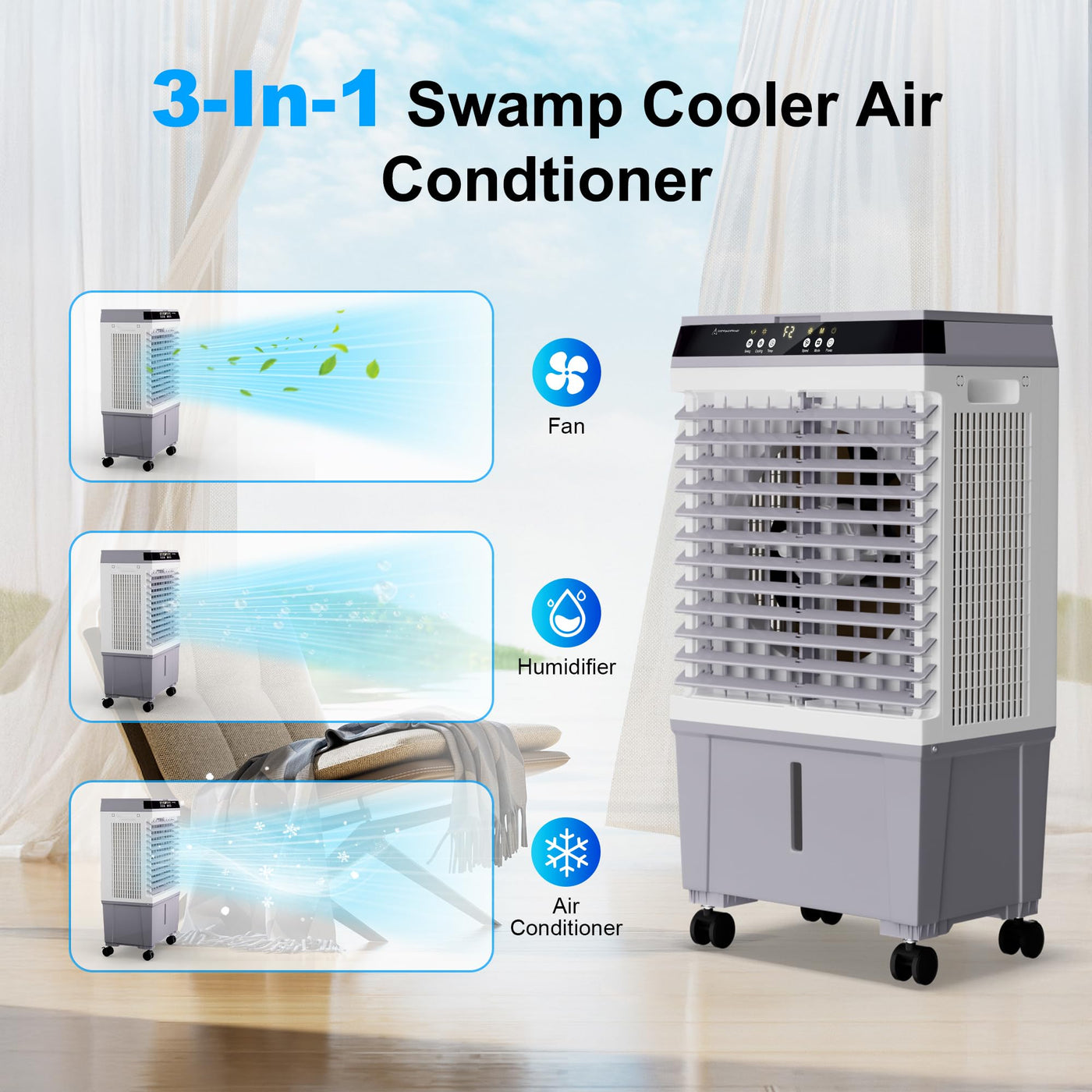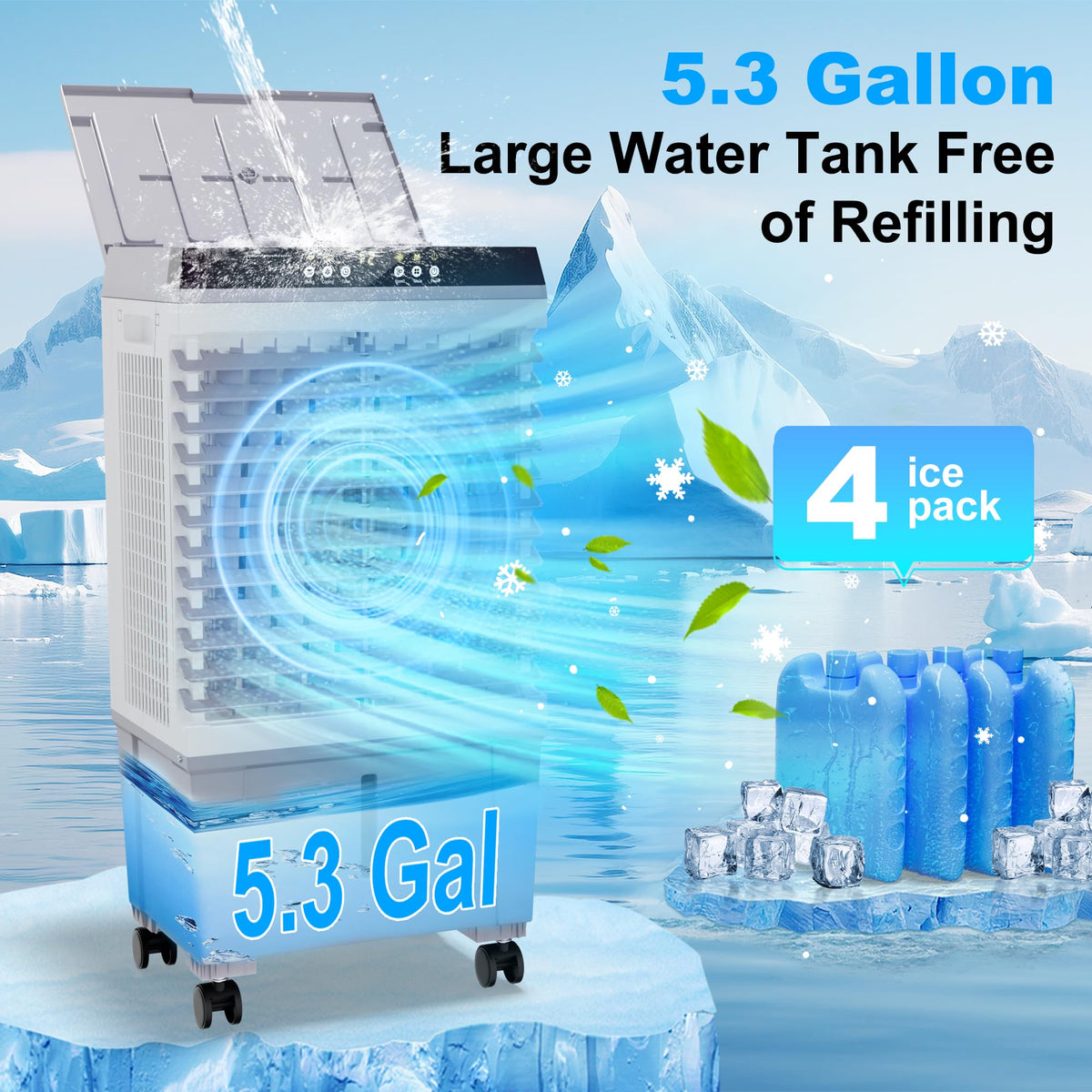 Uthfy Swamp Cooler Air Conditioner, Evaporative Air Cooler With 5.3 Gallon Water Tank, 4 Ice Box, Remote, 12H Timer, 120?Oscilla