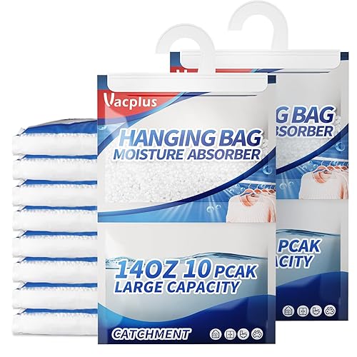 Vacplus Moisture Absorber, 10 Pack Portable Dehumidifiers For Closet And Enclosed Space, 14 Oz Dehumidifier Bags Effec