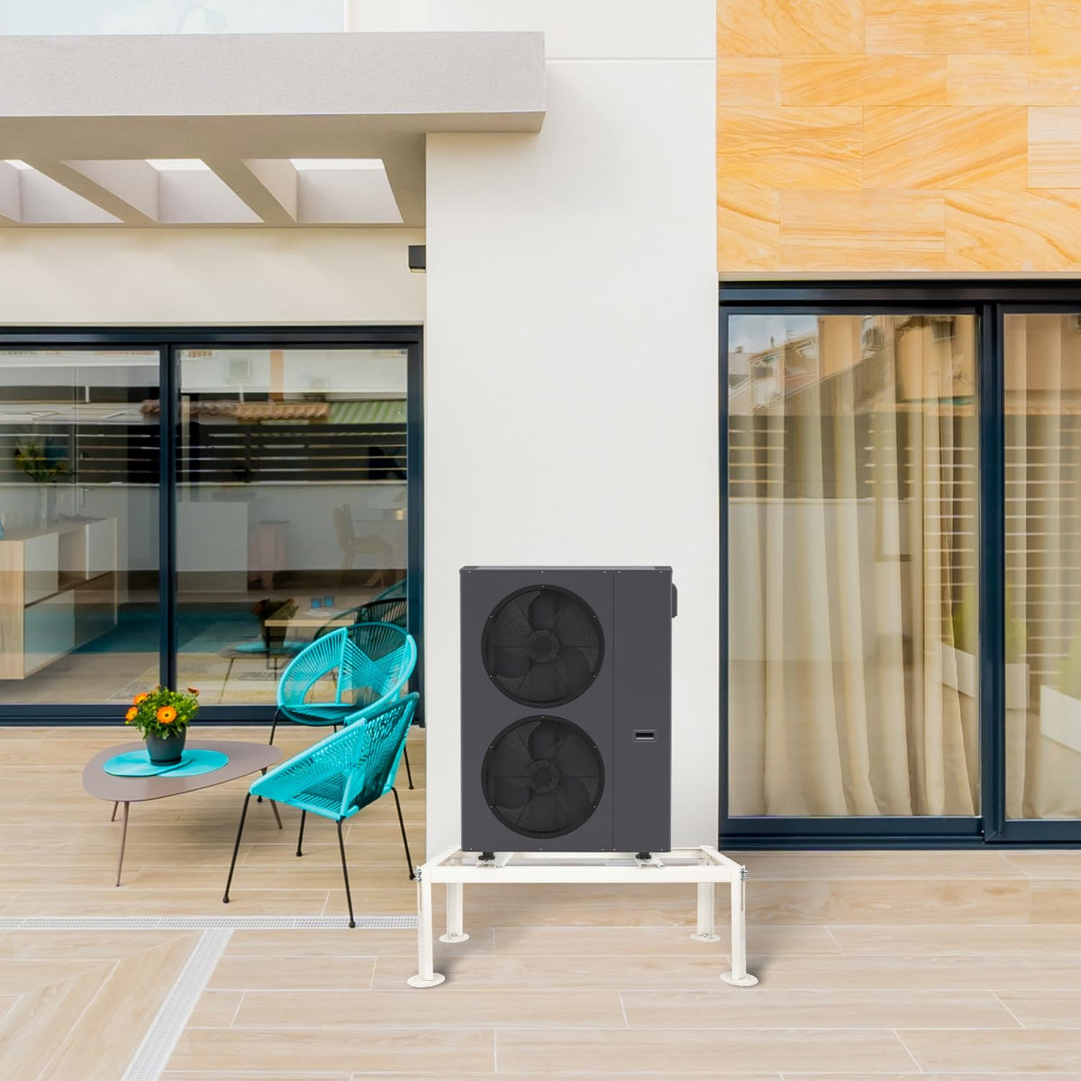 Q: What materials are used in the construction of the WeCooper Mini Split Ground Stand?A: The stand is made from solid galvanized steel with a powder coating finish, providing durability, weather resistance, and a sturdy structure for your air conditioning unit.
