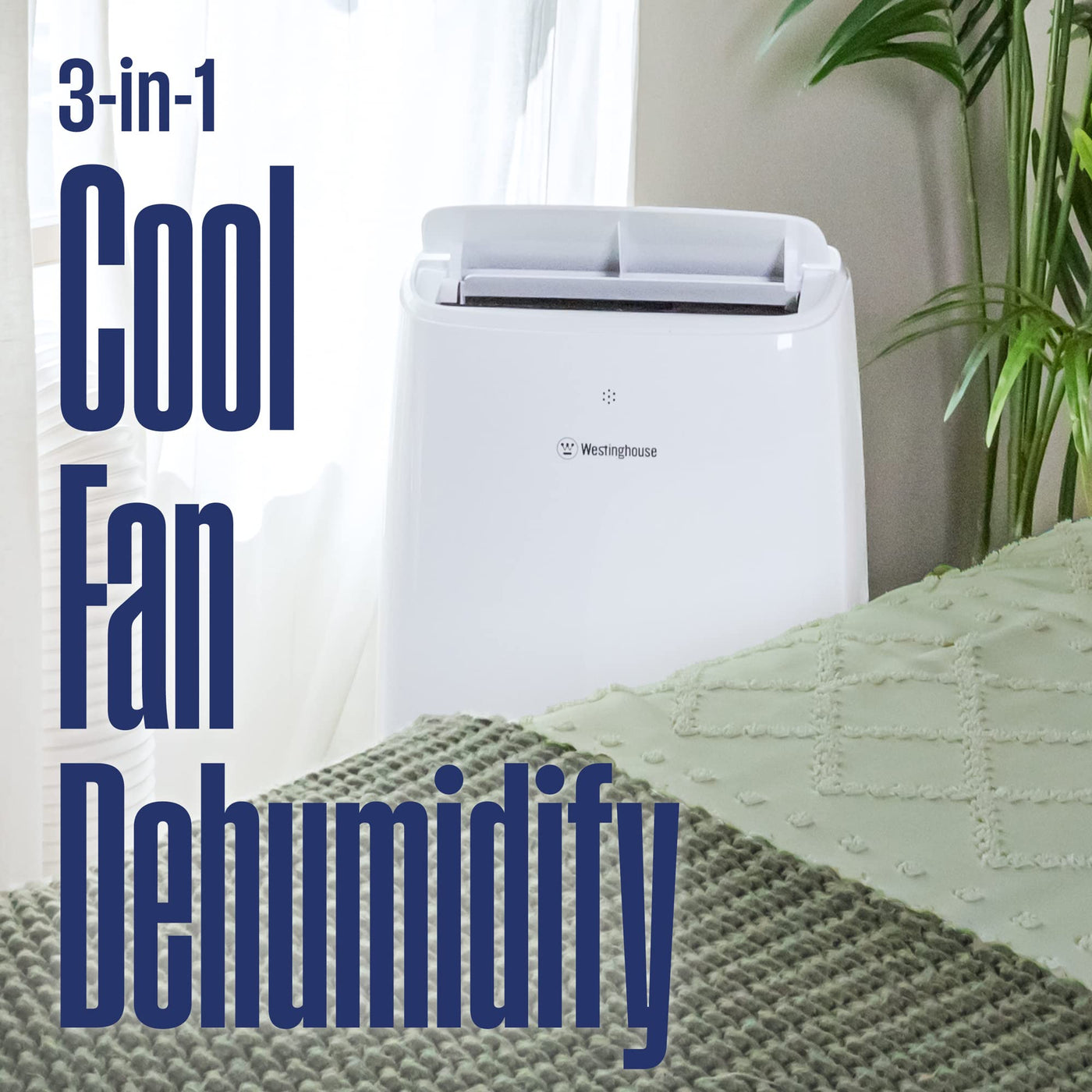 Q: Can the Westinghouse air conditioner also function as a dehumidifier?A: Yes, this portable air conditioner features a home dehumidifier mode that can remove up to 90 pints of moisture from the air per day, effectively improving air quality and comfort in humid conditions.
