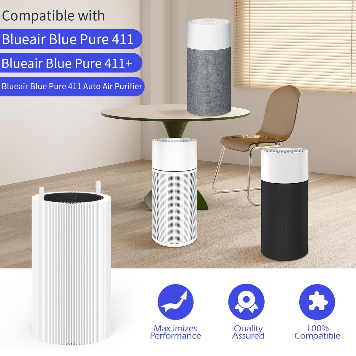 Q: What models are compatible with the XBWW 3 Packs 411 Replacement Filter?A: The XBWW 3 Packs 411 Replacement Filter is fully compatible with Blueair Blue Pure 411, 411+, 411 Auto, and Mini models.