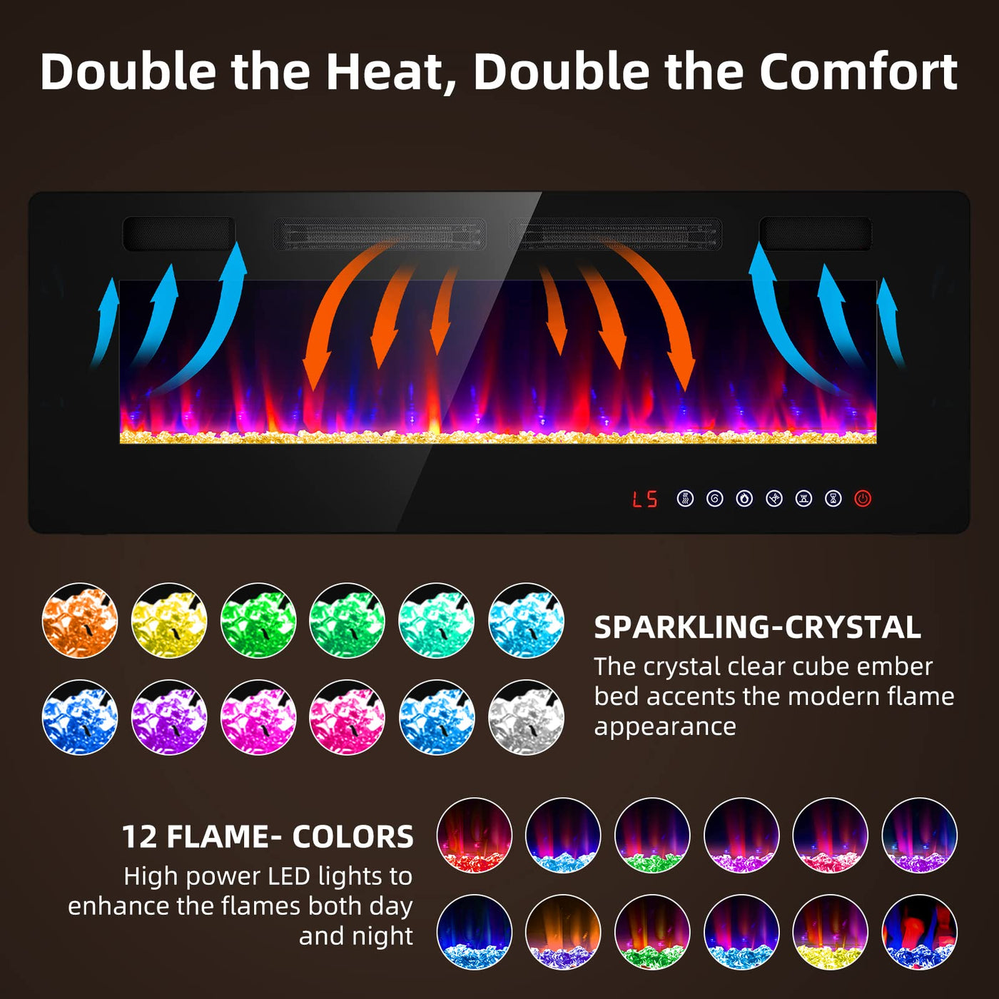 Zionheat 50 Inches Electric Fireplace Wall Fireplace For Living Room Fireplace Freestanding/Inserts/Wall Mounted With Remote Con