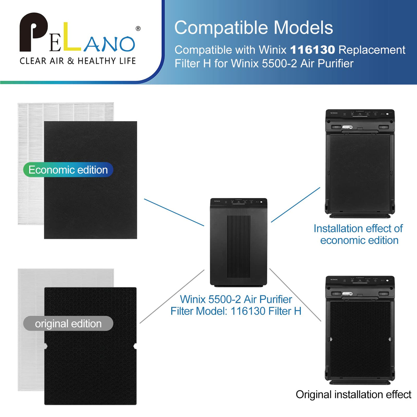 115115 Replacement Filter A, 116130 Replacement Filter H, Compatible With Winix C535,Plasmawave Air Purifier 5300 6300 5300 2 55
