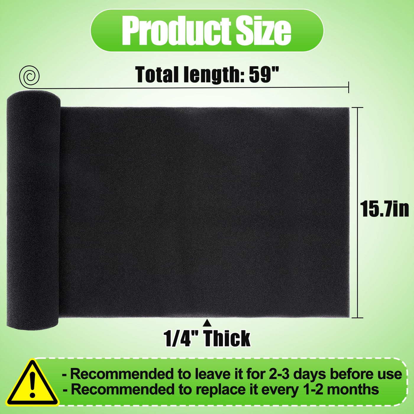 Are You Still Worried That The Air Dust In Your Home Is Not Sufficiently Purified? Say Goodbye To Turbid Air And Come And Try Our Cut To Fit Foam Replacement Filter! You Will Enjoy Cleaner Air At Home! Features: 1. Two Larger Sizes Of Air Conditioner Replacement Filters For You To Choose From, Allowing For Customizable Cutting To Fit Various Units. 2. Experience Cleaner Air With Our Foam Pad Pre-Filter, Efficiently Capturing Particles Like Hair And Dust, Ensuring A Safer Environment For Pets And Families. 3. Enjoy A Thickness Of 1/4 Inch, Effectively Blocking Large Particles And Providing Superior Filtration, With The Option To Clean And Reuse. 4. Our Compatible Design Suits Various Appliances Such As Air Purifiers And Vents, Offering Versatility For Different Electrical Devices. Specification: - Quantity: 1 Pack. - Material: Polyurethane Sponge. - Color: Black. - Size: 15.7'' X 59'' X 1/4''. Warm Tips: - Vacuum Packaging, After Opening, Needs To Be Left For 2-3 Days To Fully Rebound Before Use. - Replace Every 1-2 Months.