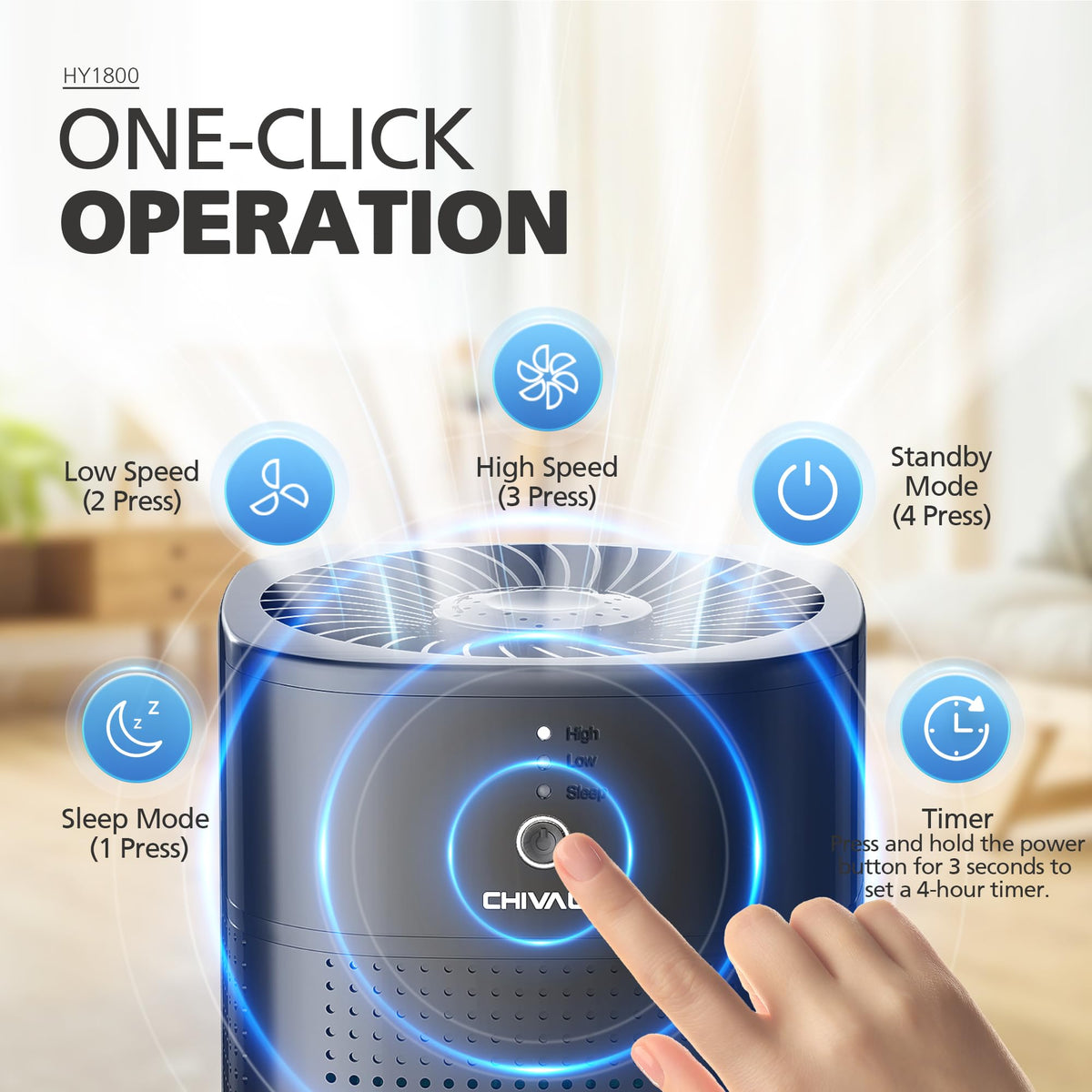 Chivalz Air Purifiers For Home, Quiet Air Cleaner With 24Db Sleep Mode, Hepa Filter.Carb Certified And Fcc Certified. This Compact Air Purifier For Bedroom Features A 360Air Intake System, Ensuring That Every Corner Of The Room Is Effectively Purified From All Directions. Its Portable Design Allows For Flexible Use, You Can Use A Single Purifier In Bedroom Or Two At The Same Time In Living Room, Bringing Fresh And Clean Air Closer To You. This Portable Air Purifier For The Bedroom Offers A Simple One-Button Operation.You Can Easily Switch Between 3 Different Speeds And Activate The 4-Hour Timer Mode By Long-Pressing The Button For 3 Seconds.