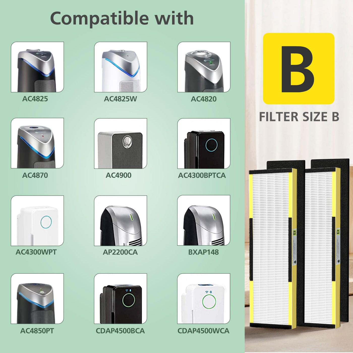 Compatibility: Perfectly Fit For Filter B Air Purifier Models: Flt4825 Filter B, Ac4300Bptca, Ac4900Ca, Ac4825, Ac4825E, Ac4850Pt, Ac4900Ca, Ac4820, Model Ap2200Ca And Bxap148. Package Includes: 2 Hepa Filters And 8 Activated Carbon Pre-Filters An Ideal Flt4825 Hepa Filter B Replacement True Hepa Air Purifier Filters Replacement Professionally Designed For Your Units. We Suggest Changing The Hepa Filter After 8-12 Months And The Activated Carbon Pre-Filter Every 2-3 Months Or As Needed