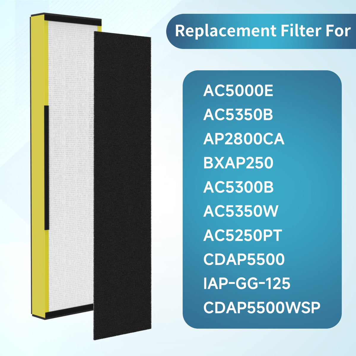 ?Compatible Models?Perfectly Compatible With Ac5000/Ac5000E/Ac5250Pt/Ac5350B/Ac5350Bca/Ac5350W/Ac5300B/Cdap5500B/Ap2800Ca, Part Flt5000, Flt5250Pt Flt5111, Filter C, Black+Decker Bxap250 & Lowe'S Idylis Iap-Gg-125 | ?Package?2-Pack True Hepa Filters And Six Activated Carbon Pre-Filters Bring You Surprises. | ?H13 True Hepa Filter?True Hepa Filters Capture 99.97% Of Particles As Small As 0.3 Microns, Improving Your Sleep And Quality Of Life. | ?Activated Carbon Pre-Filter?Highly Effective Activated Carbon Can Help Reduce Odors. | ?Buy With Confidence?We Suggest Replacing The Filter Element According To Your Usage Situation. If You Have Any Questions, Please Get In Touch With Us.