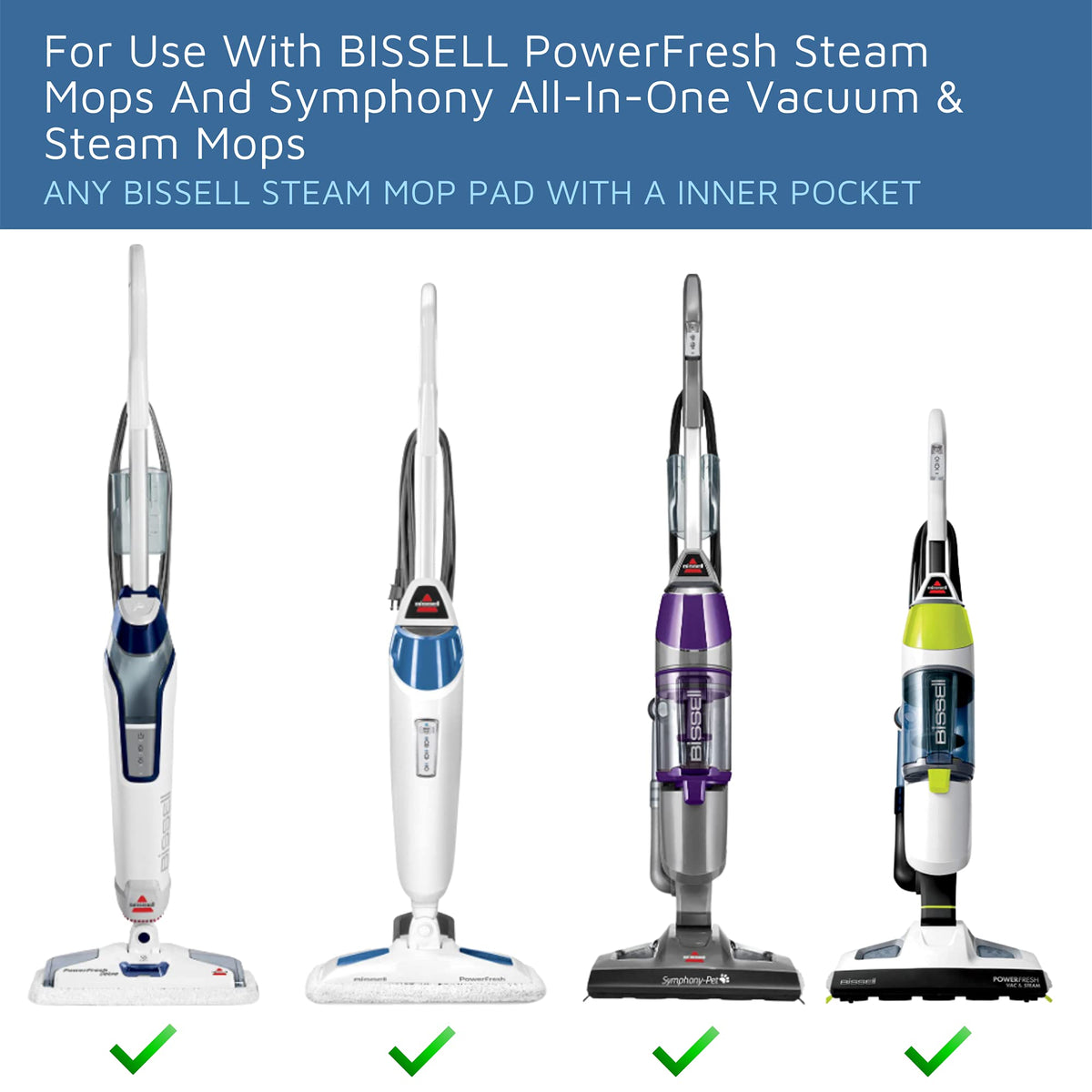 Q: What types of Bissell steam mops are compatible with these fragrance discs?A: These fragrance discs are compatible with various Bissell PowerFresh Steam Mop models including the 1940 series, PowerFresh Deluxe Steam Mop 1806 series, and Symphony All-in-One Vacuum & Steam Mop Series. Please refer to the product description for a complete list of compatible models.