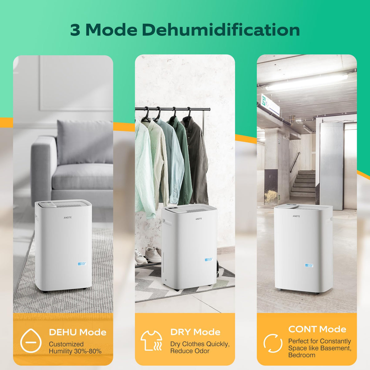 Andte 52 Pint Dehumidifier 4500 Sq.Ft For Basements And Home, Large Room Energy Star Dehumidifiers With Drain Hose & Water Tank Auto Or Manual Drainage, 24H Timer, Auto Defrost, Dry Clothes Function