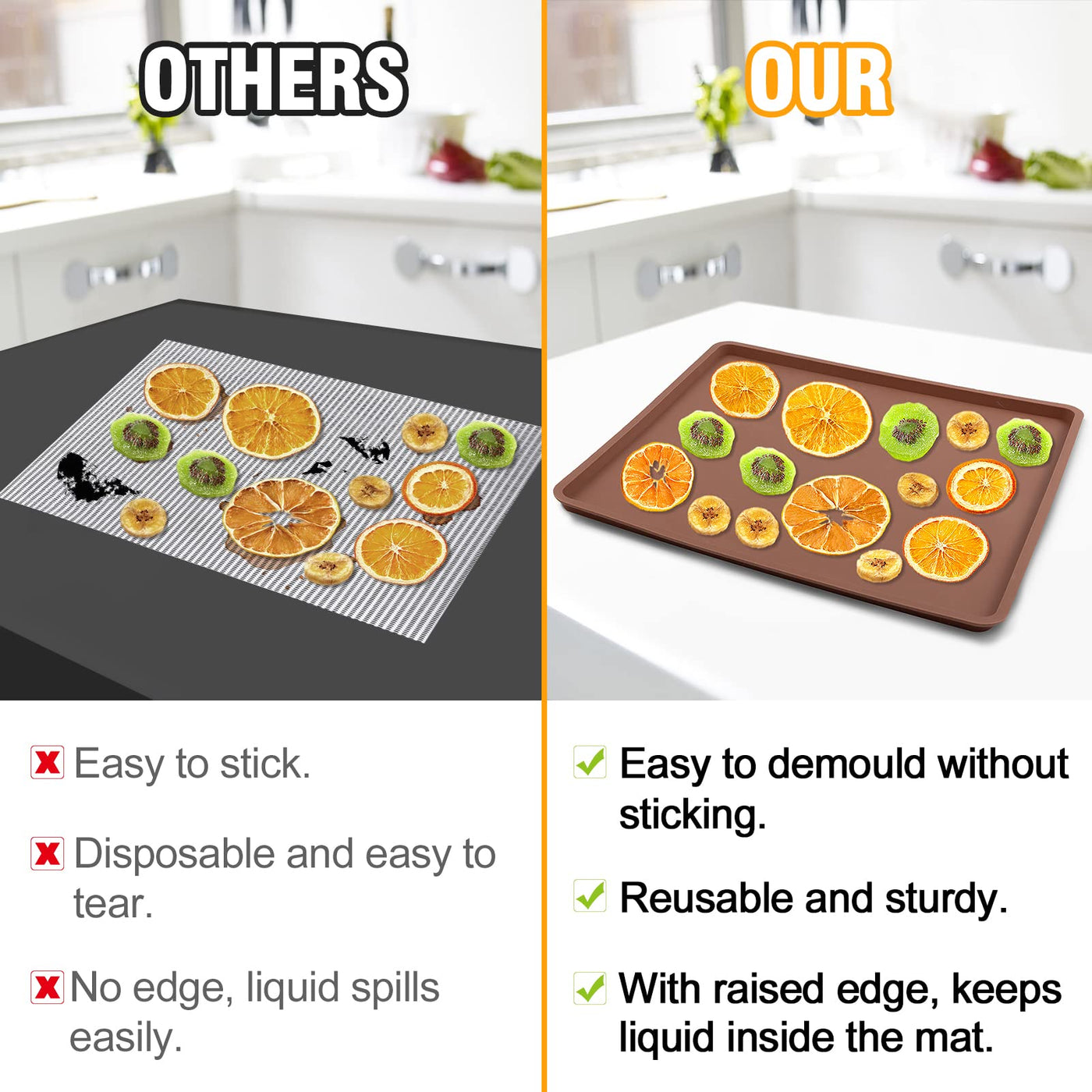 Are You Still Looking For A Dehydration Silicone Padare You Still Worried About The Liquid Flowing Out And Dirtying The Metal Tray When Drying Foodlook At Our Products, More Than Enough For Your Needsfeatures:1 Using Food-Grade Silicone, Safe, Non-Toxic, Easy To Clean And Reusable2 The Raised Edge Design Prevents Liquid From Flowing Out3 High Temperature Resistance, The Temperature Range That Can Be Tolerated Is -40 Af To 446 Af4 Fit For 14 X 14 Trays And Also For Excalibur Dehydrator5 Widely Used In Vegetables, Meat, Fruits And Other Foodsnotes:1 The Silicone Texture Is Soft, Please Use It Together With The Tray To Prevent The Food From Falling2 The Size Of The Metal Tray Cannot Be Smaller Than That Of The Silicone Mats3 There May Be A Little Odor Due To The Sealed Package When You Receive The Silicone Pads, But Dont Worry About It, Just Wash Them With Detergent And Dry Them In A Ventilated Place For Hours, And The Odor Will Disappearproduct Specifications:Material: Siliconedimensions: 137 X 137Color: Brownpackage Contents: 6 X Silicone Dehydrator Mats