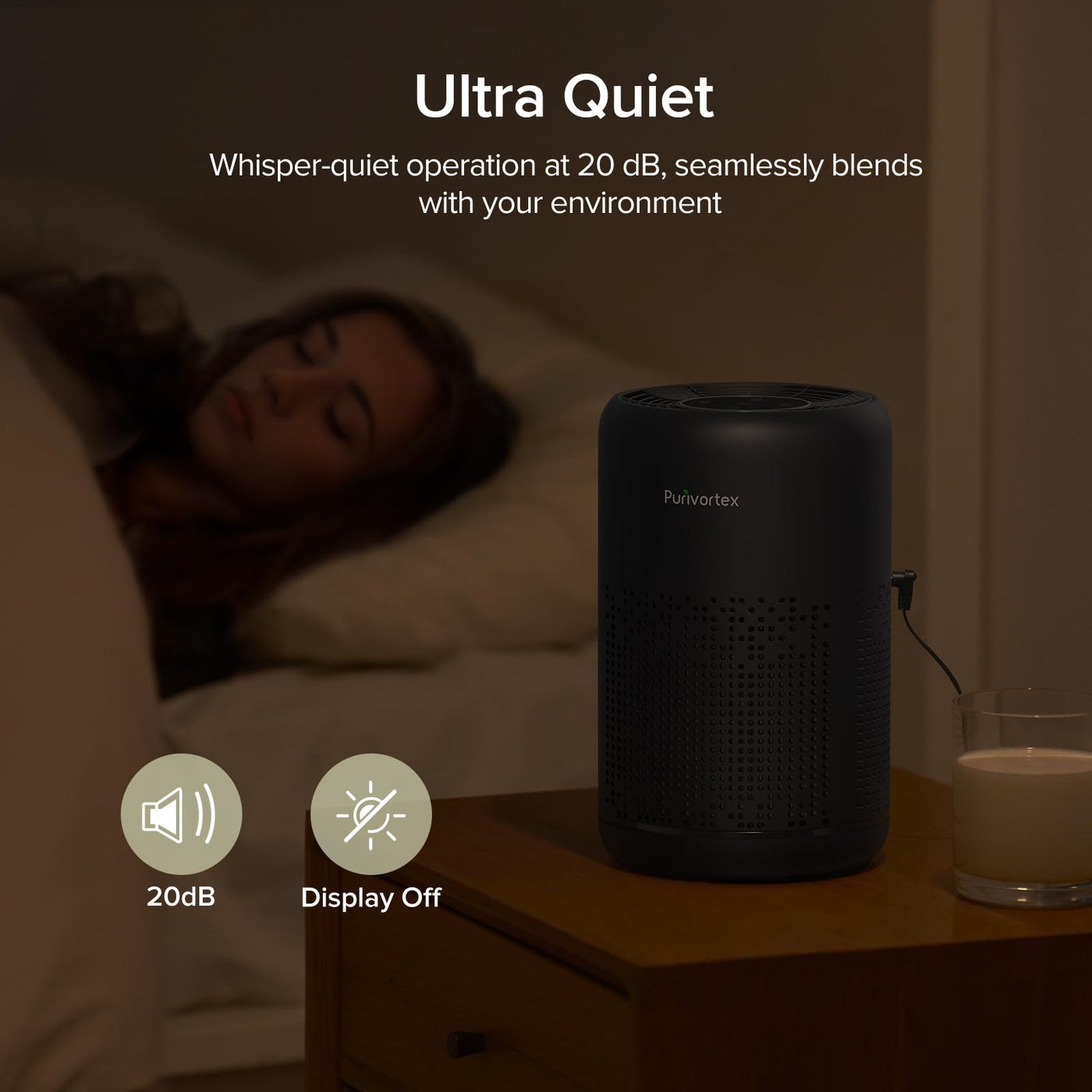 Purivortex HEPA Air Purifier AC300 - Black, Portable, Filters Smoke, Dander & Odors, with Sleep Mode & Fragrance Sponge