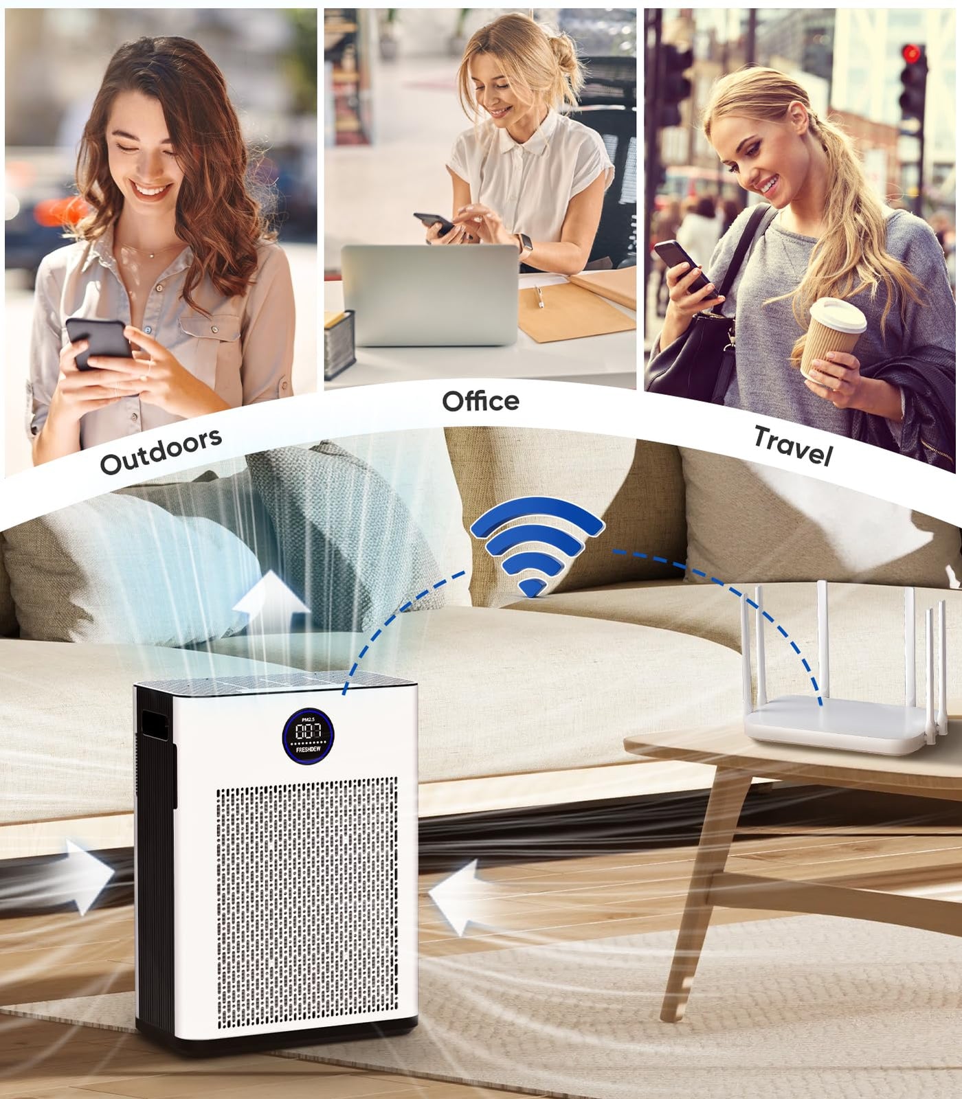 Air Purifiers For Home,Freshdew Air Purifiers For Bedroom Up To 2300Ft With Smart Wifi,Air Quality And Sensors,Double Sided Air