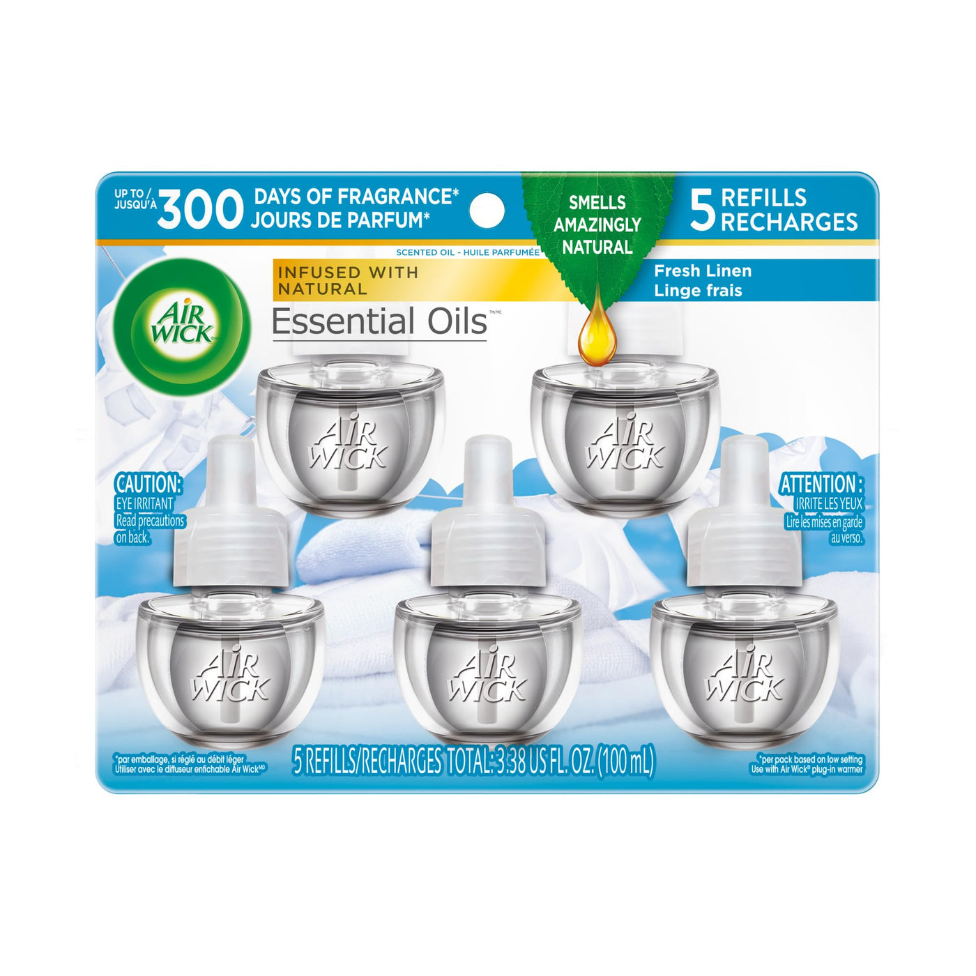 Air Wick Plug In Scented Oil Refill, 5Ct, Fresh Linen, Essential Oils, Air Freshener