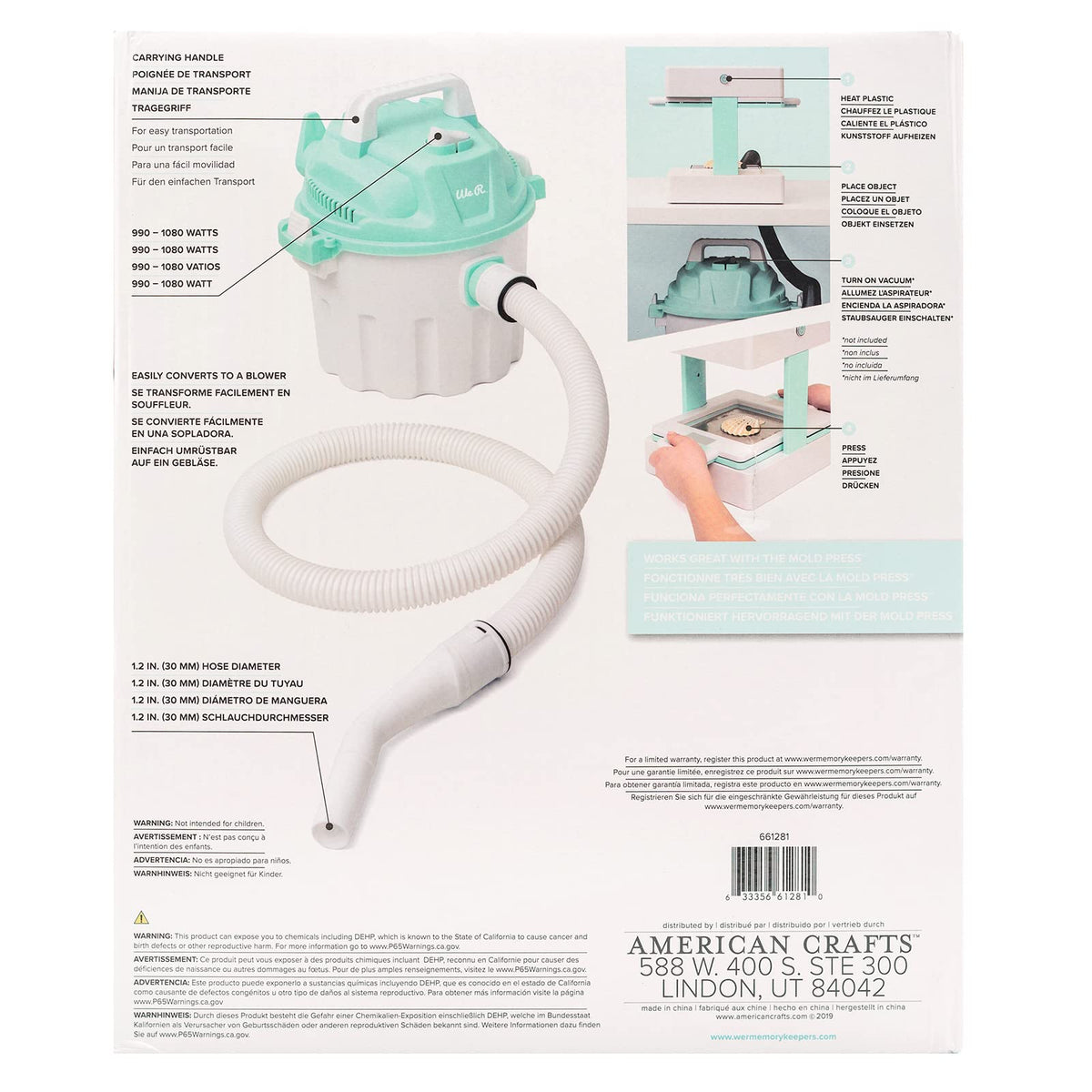 The We R Memory Keepers Mold Press Vacuum Is A Powerful Wet/Dry Shop Vac That Can Be Paired With The We R Memory Keepers Mold Press (Sold Separately) To Turn Everyday Objects Into 3D Shapes! This Vacuum Is Designed To Create Powerful Suction When Paired With The Mold Press. Forming Plastic Molds For All Your Creative Projects Has Never Been Easier With The Mold Press And Mold Press Vacuum. This Wonderful Vacuum Isn'T Just For Creating Plastic Forms Though, It'S Also Great For Cleaning Craft Room Messes! This Package Includes One 2.5 Gal (10 L) Wet/Dry Shop Vacuum With A Convenient Handle For Easy Transportation. 1.2 Inch (30 Mm) Hose Diameter Makes For Easy Pairing With The Mold Press And Is Large Enough To Clean Up Wet And Dry Messes. The We R Memory Keepers Mold Press Vacuum Also Easily Converts Into A Handy Blower When Needed.